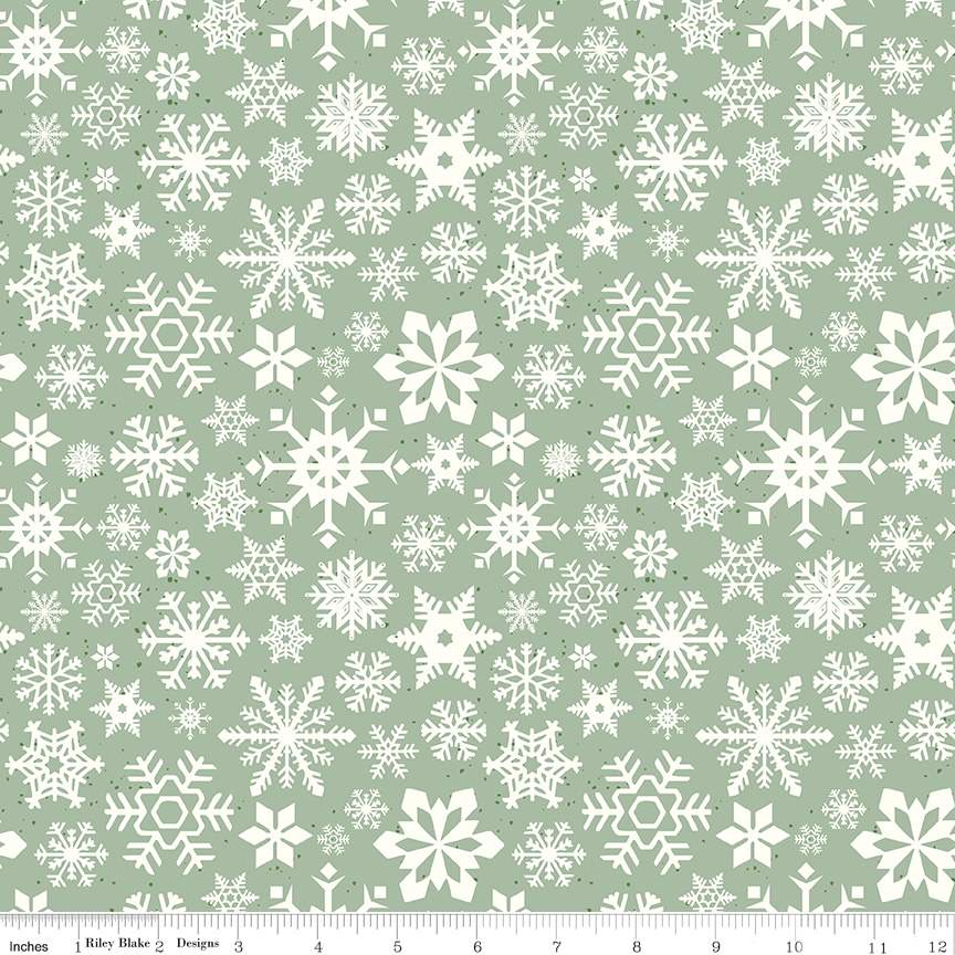 Fabric Riley Blake Sage Snowflakes Mistletoe & Holly by the Quarter Yard C16402-SAGE