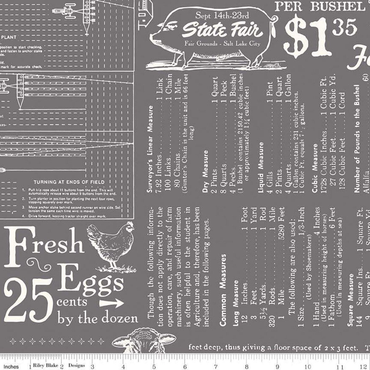 Fabric Riley Blake Steel Farm Girl Vintage 108" Wide Back by the Quarter Yard WB7887-STEEL