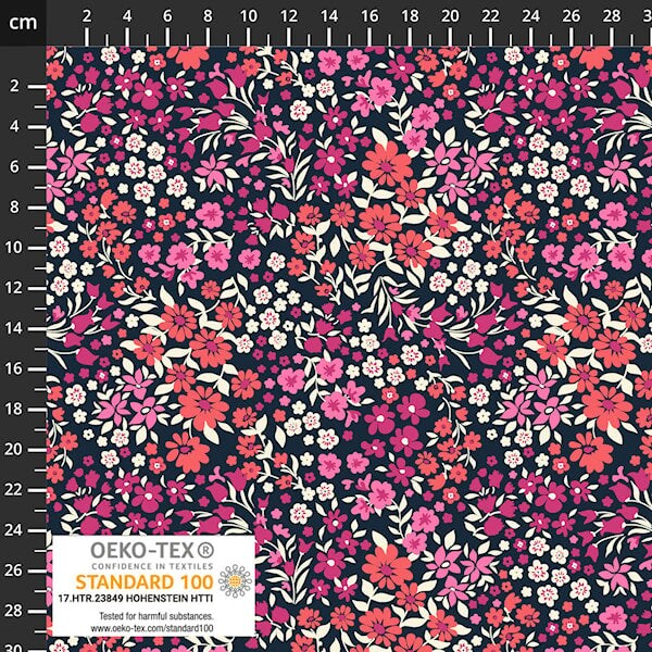 Fabric Stof Navy Pink Floral AVALANA Jersey by the Quarter Yard 19-1454