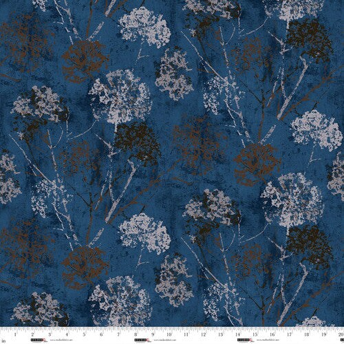 Fabric Studio E Navy Dandelion Stamp 108" Wide Back by the Quarter Yard 8276-77