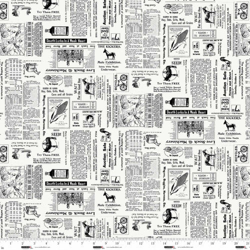 Fabric Studio E Off White Newspaper Ads Neighborhood Association by the Quarter Yard 8424-01