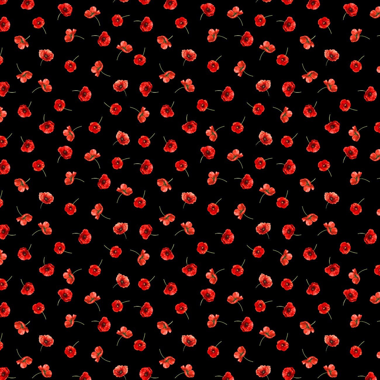 Fabric Timeless Treasures Black Tossed Poppies Poppy Passion by the Quarter Yard CD3809-BLACK