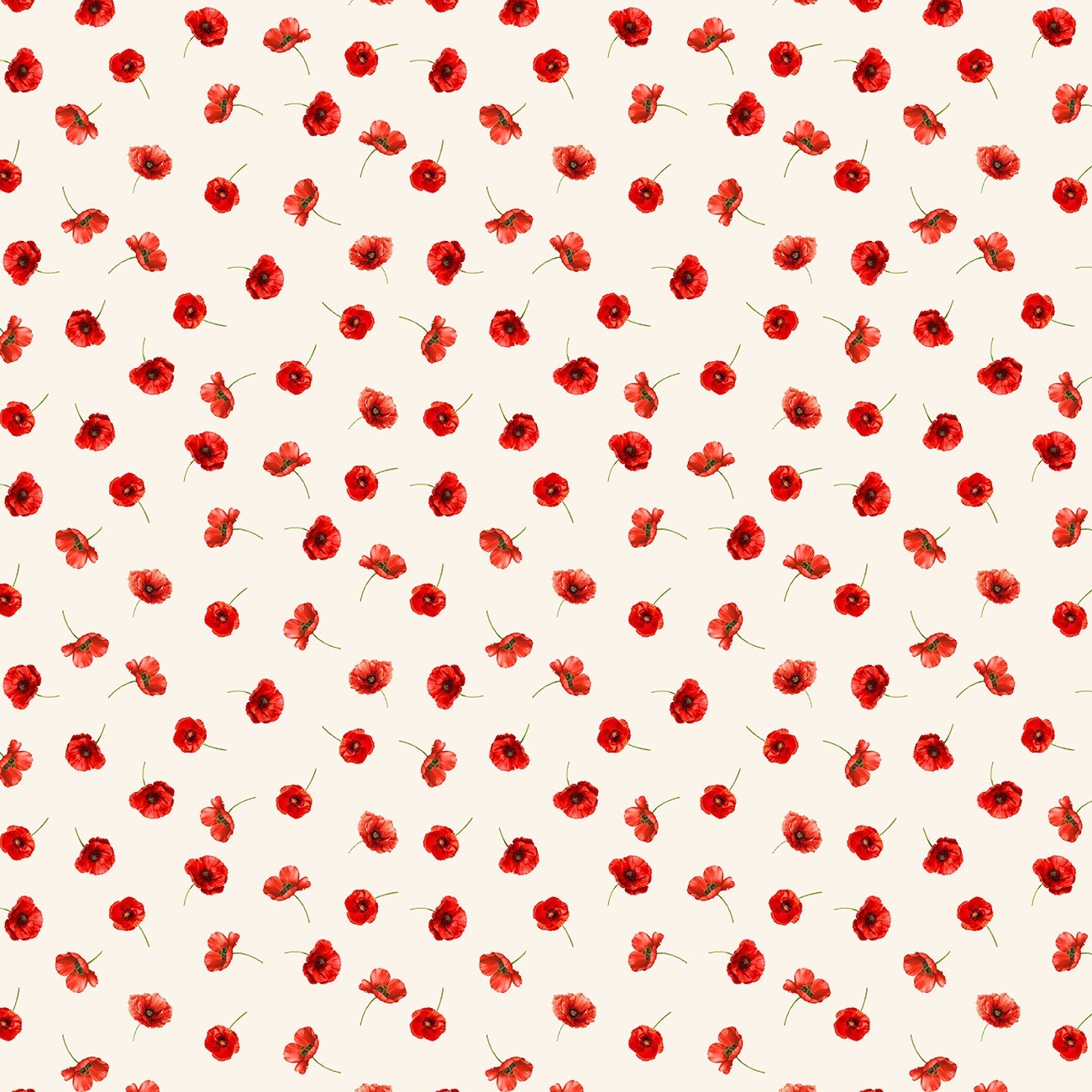 Fabric Timeless Treasures Cream Tossed Poppies Poppy Passion by the Quarter Yard CD3809-CREAM