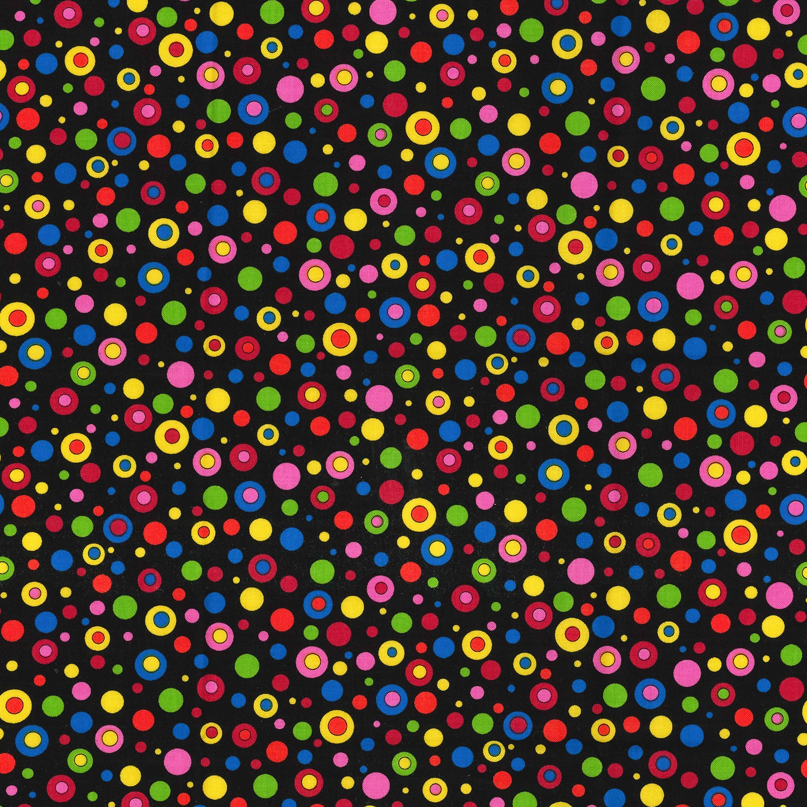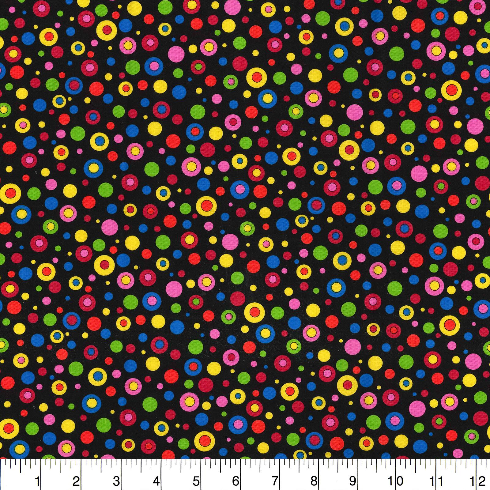 Fabric Traditions Black Multicolor Circles Cotton Fabric