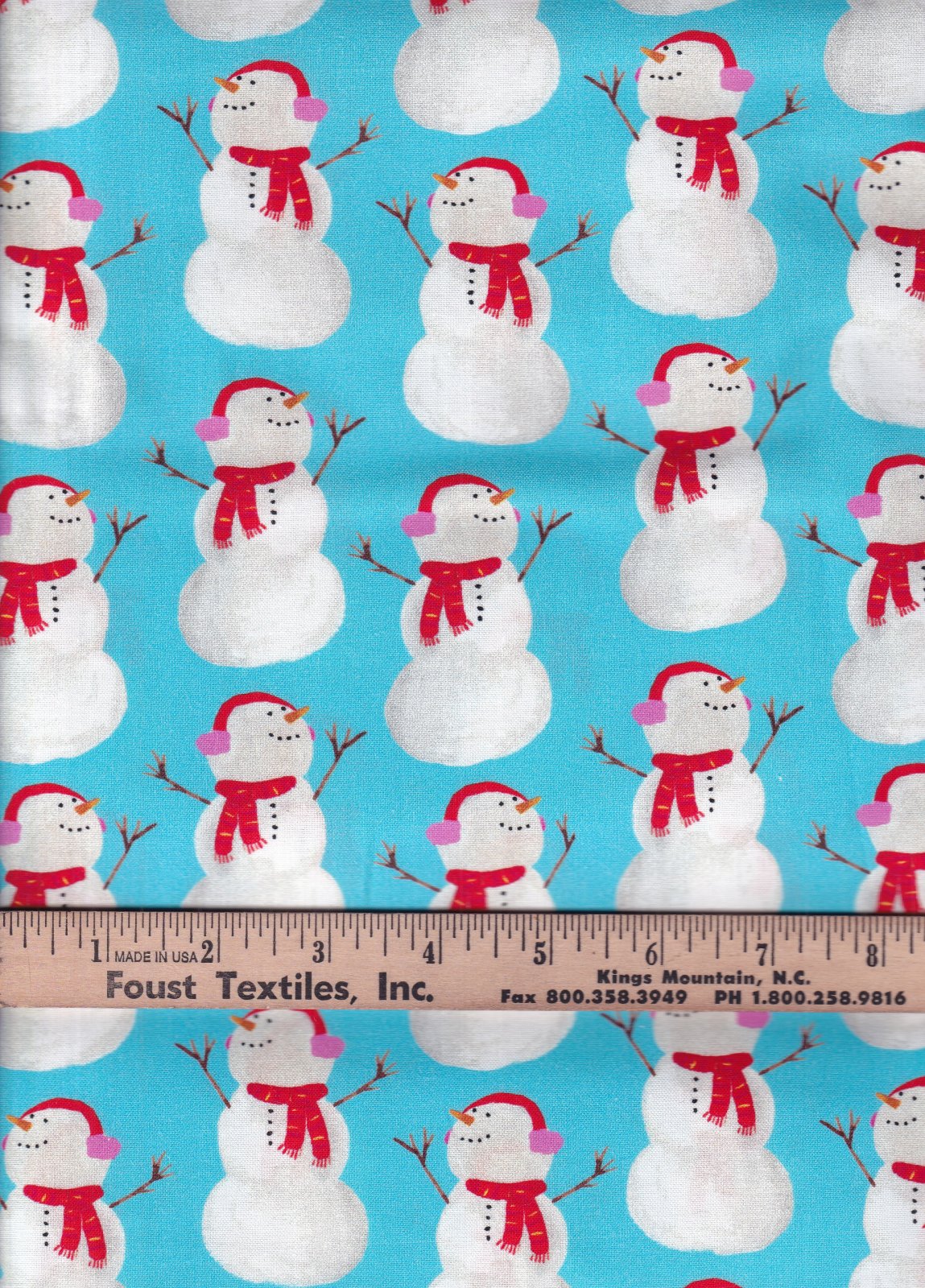 Fabric Traditions Christmas Best in Snow-Man Blue 100% Cotton Price Per Yard