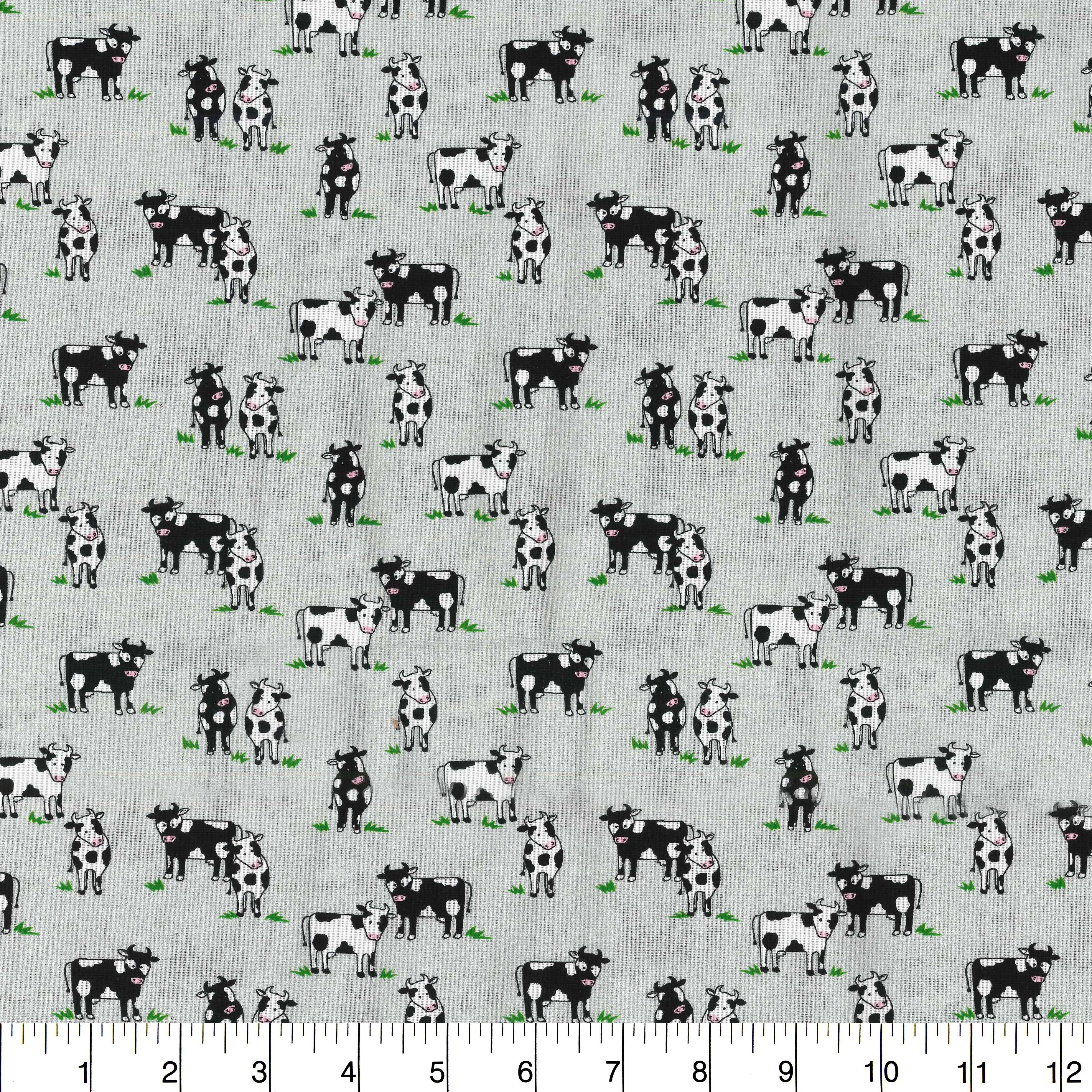 Fabric Traditions Cows on Gray Cotton Fabric