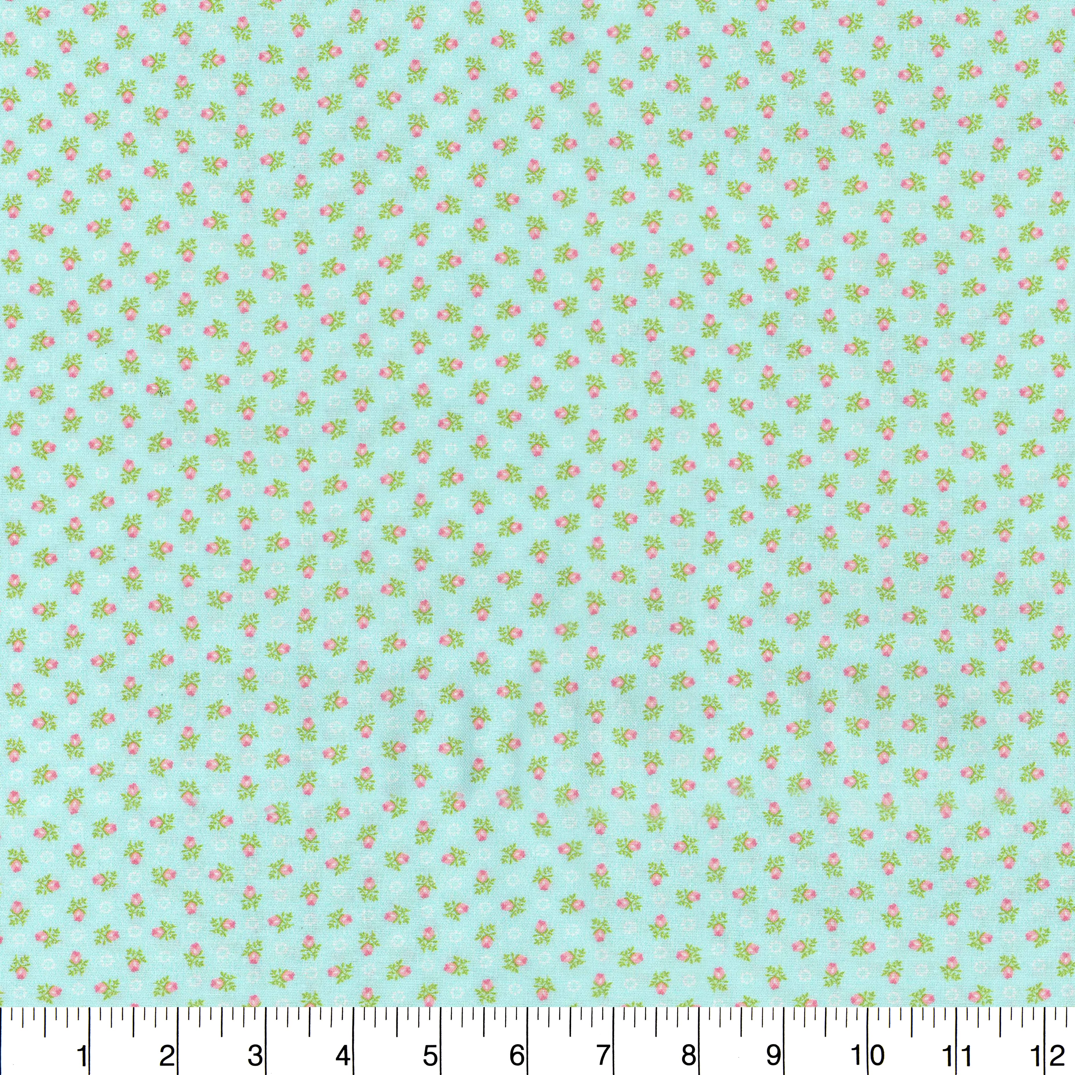 Fabric Traditions Light Blue Vintage Ditsy Rose Cotton Fabric