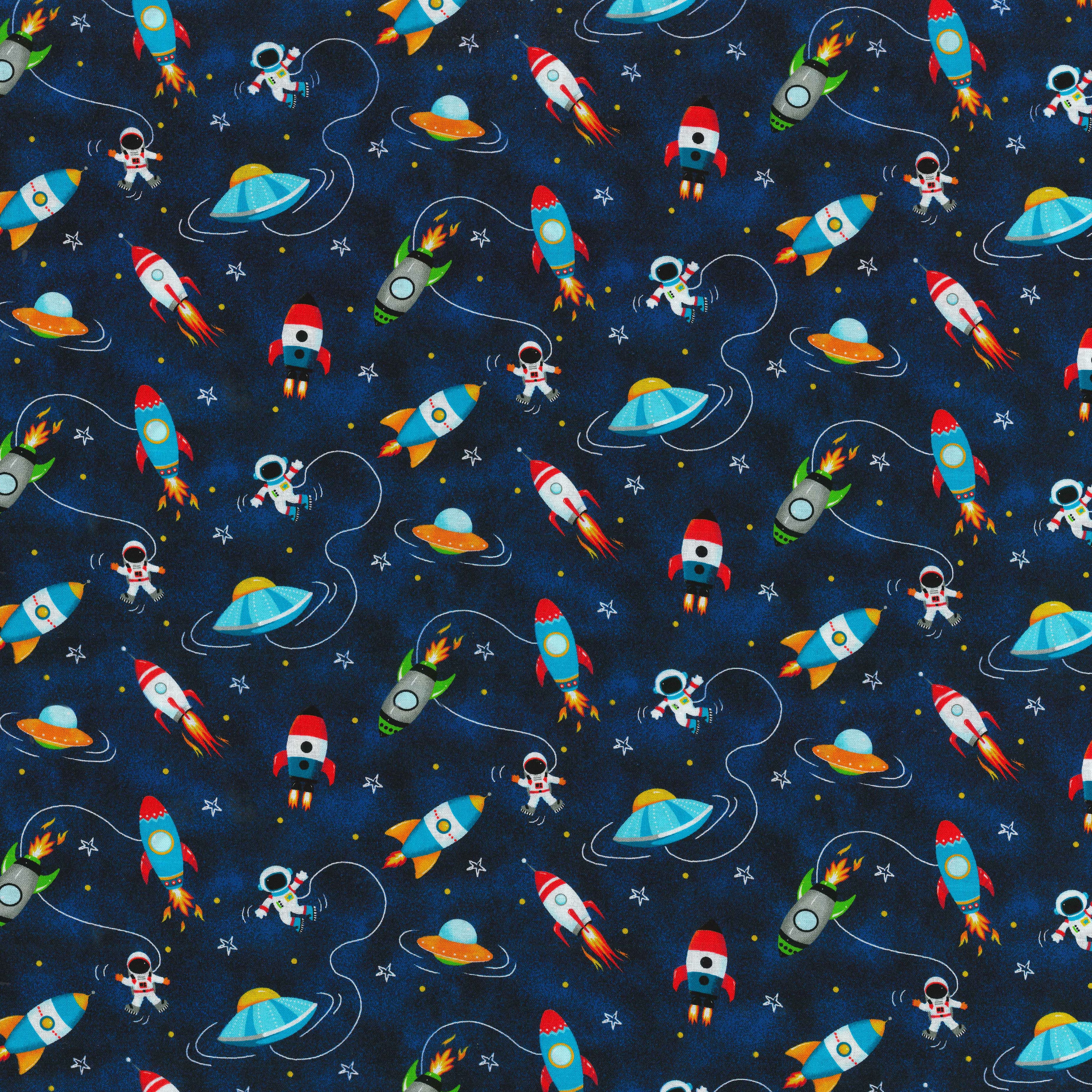 Fabric Traditions Navy Space Ships Cotton Fabric