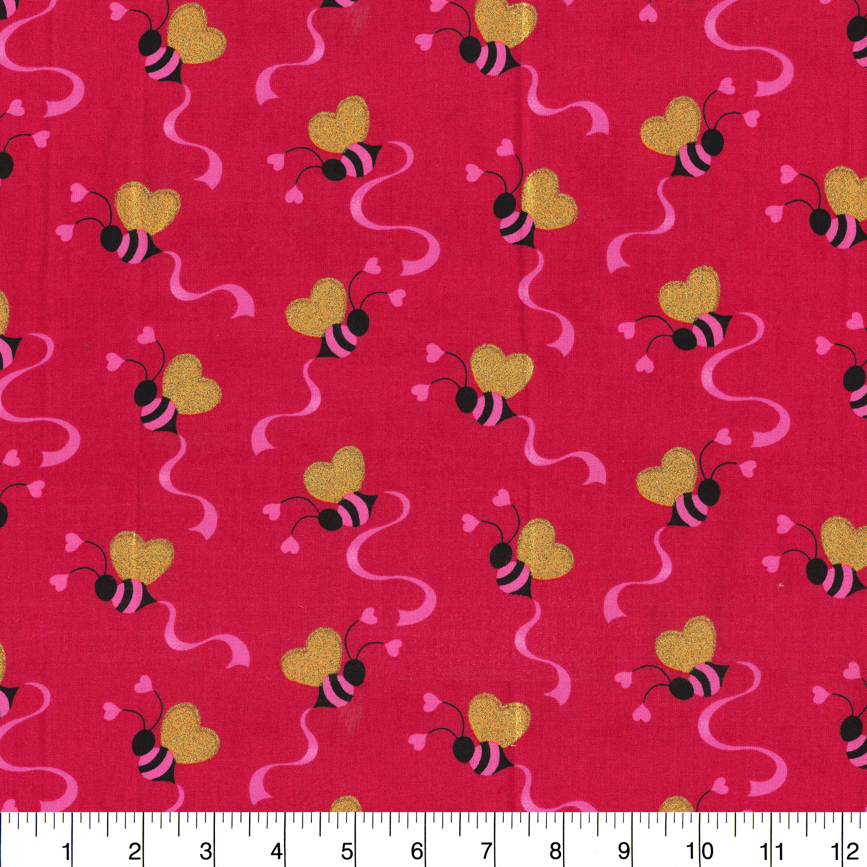 Fabric Traditions Valentine's Tossed Bees & Hearts Glitter Cotton Fabric