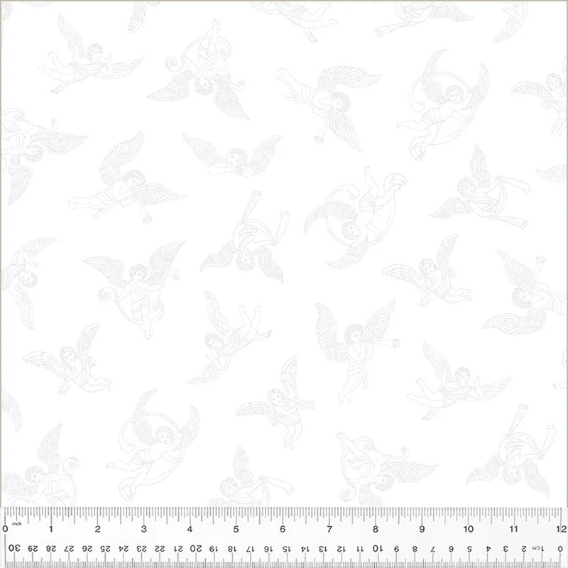 Fabric Windham Frosting White on White Cherubs by the Quarter Yard 54614-1