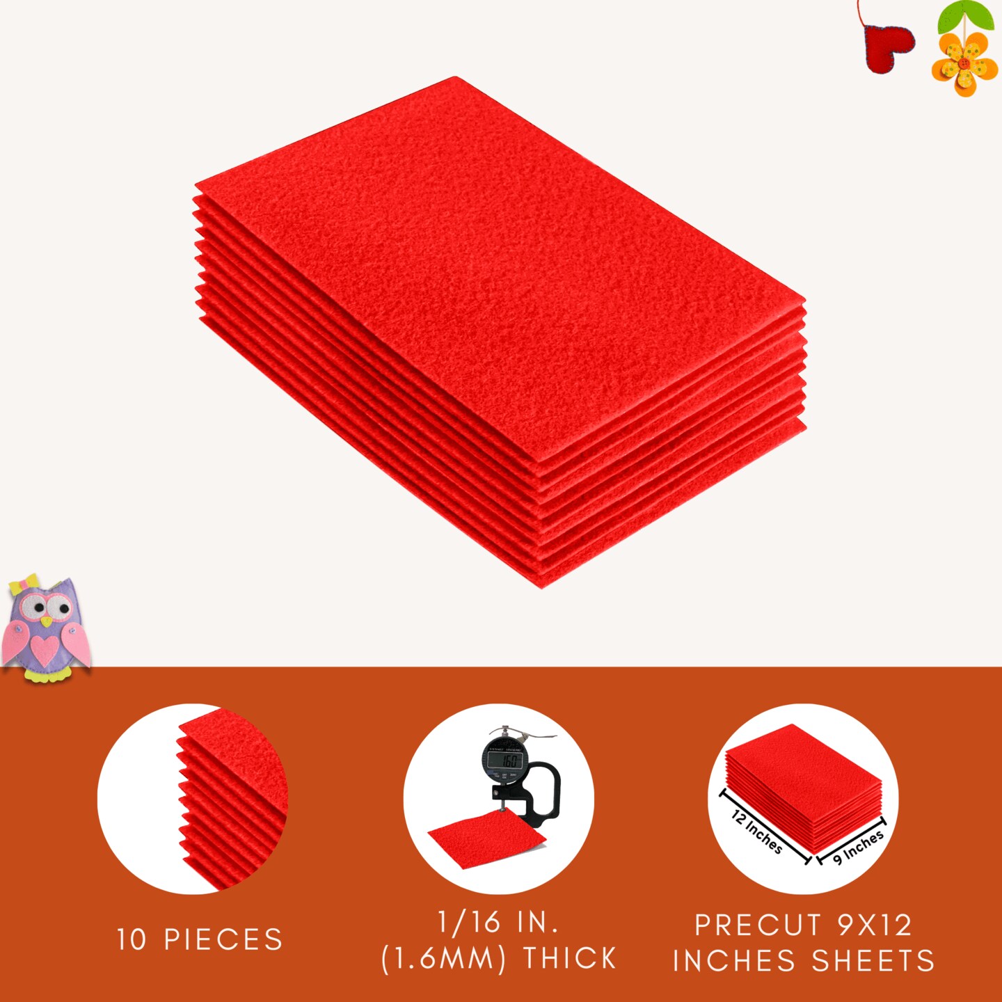 FabricLA Acrylic Felt Sheets for Crafts - Precut 9" X 12" Inches (20 cm X 30 cm) Felt Squares - Use Felt Fabric Craft Sheets for DIY, Hobby, Costume, and Decoration | Hot Orange - 10 Pieces