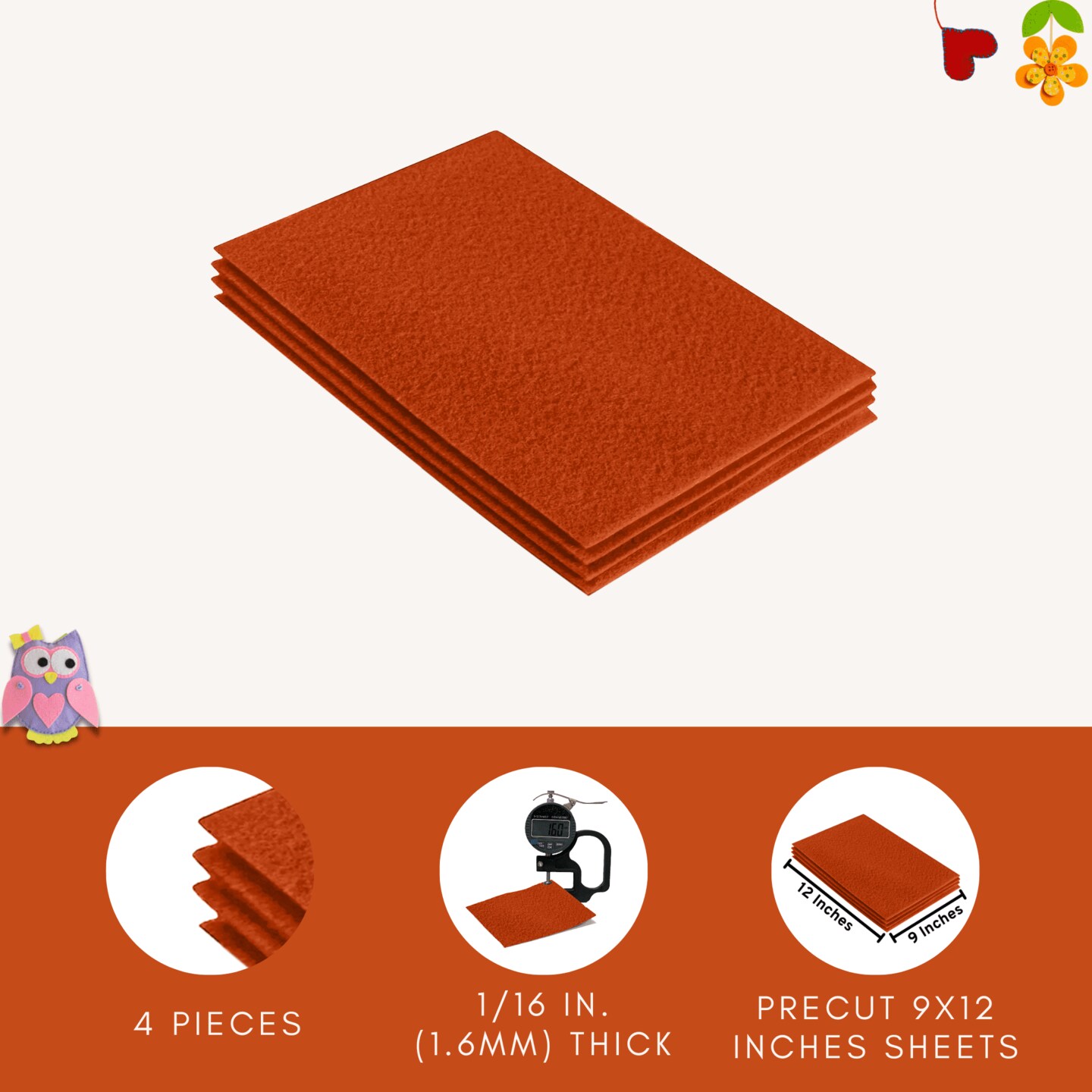 FabricLA Acrylic Felt Sheets for Crafts - Precut 9" X 12" Inches (20 cm X 30 cm) Felt Squares - Use Felt Fabric Craft Sheets for DIY, Hobby, Costume, and Decoration | Orange