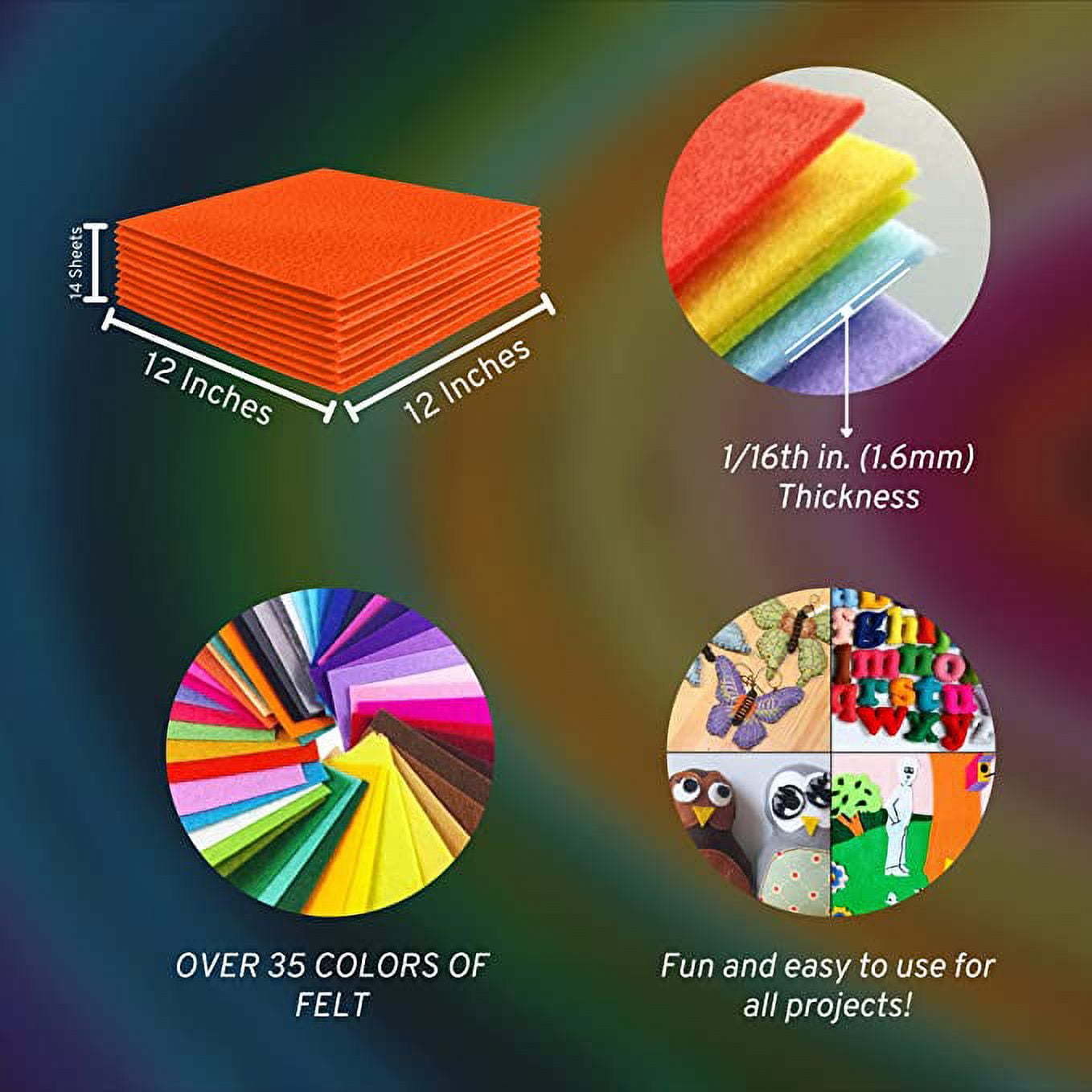 FabricLA Acrylic Felt Sheets For Crafts - Soft Precut 12" X 12" Inches (30.5cm X 30.5cm) Felt Squares - Use Felt Fabric Craft Sheets for DIY, Hobby, Costume, And Decoration - Light Orange, 14 Pieces