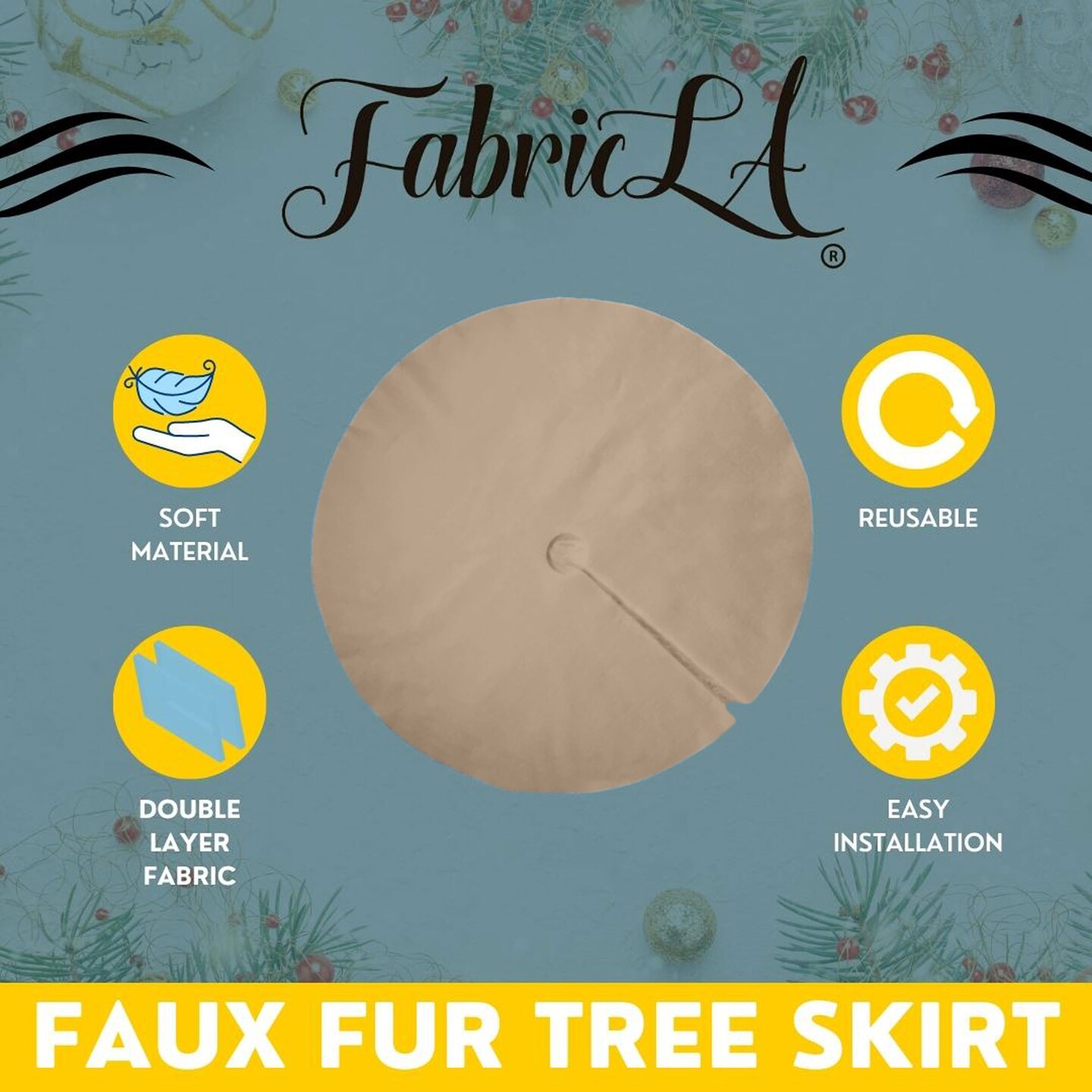 FabricLA Beige Faux Fur Tree Skirt Cut - 30-Inches with Rounded Edges (No Backing) for Christmas