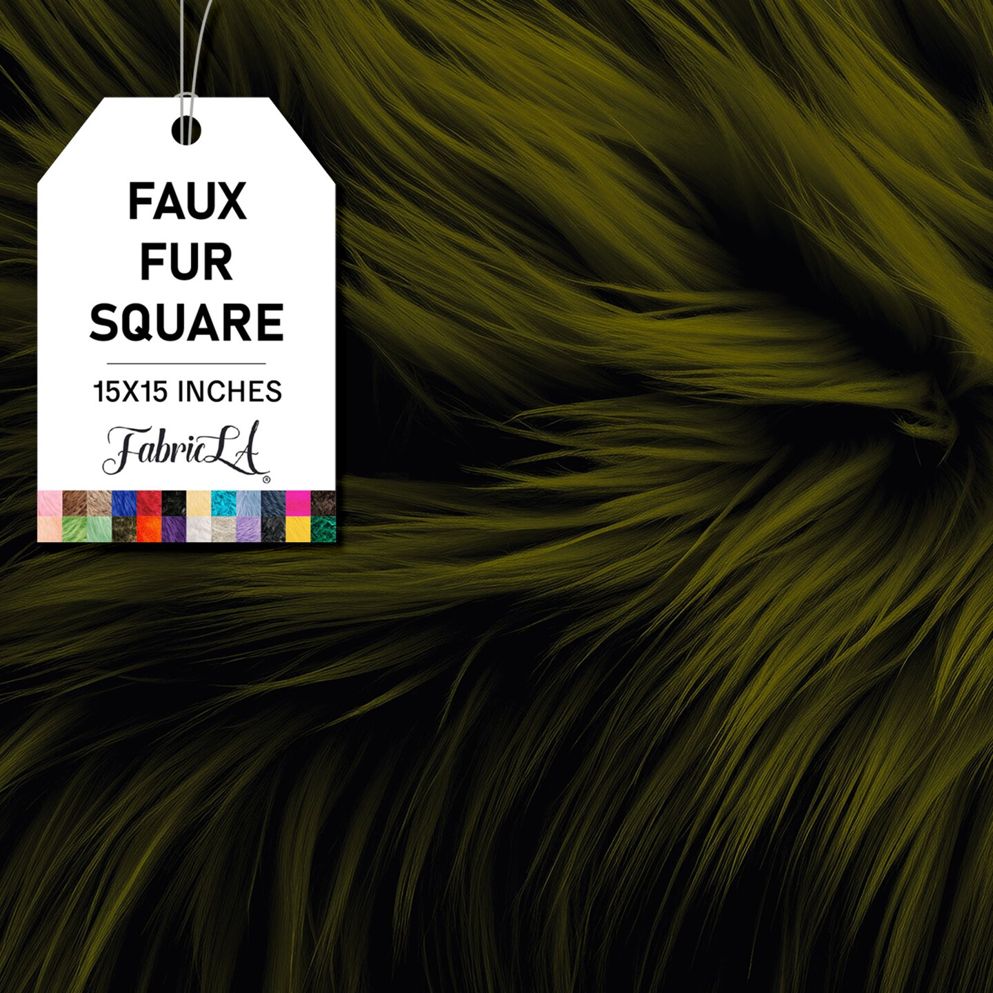 FabricLA | Faux Fur Fabric Square | 15" X 15" Inch Wide Pre-Cut Shaggy | Fake Fur Fabric | DIY, Craft Fur Decoration, Fashion Accessory, Hobby | Olive