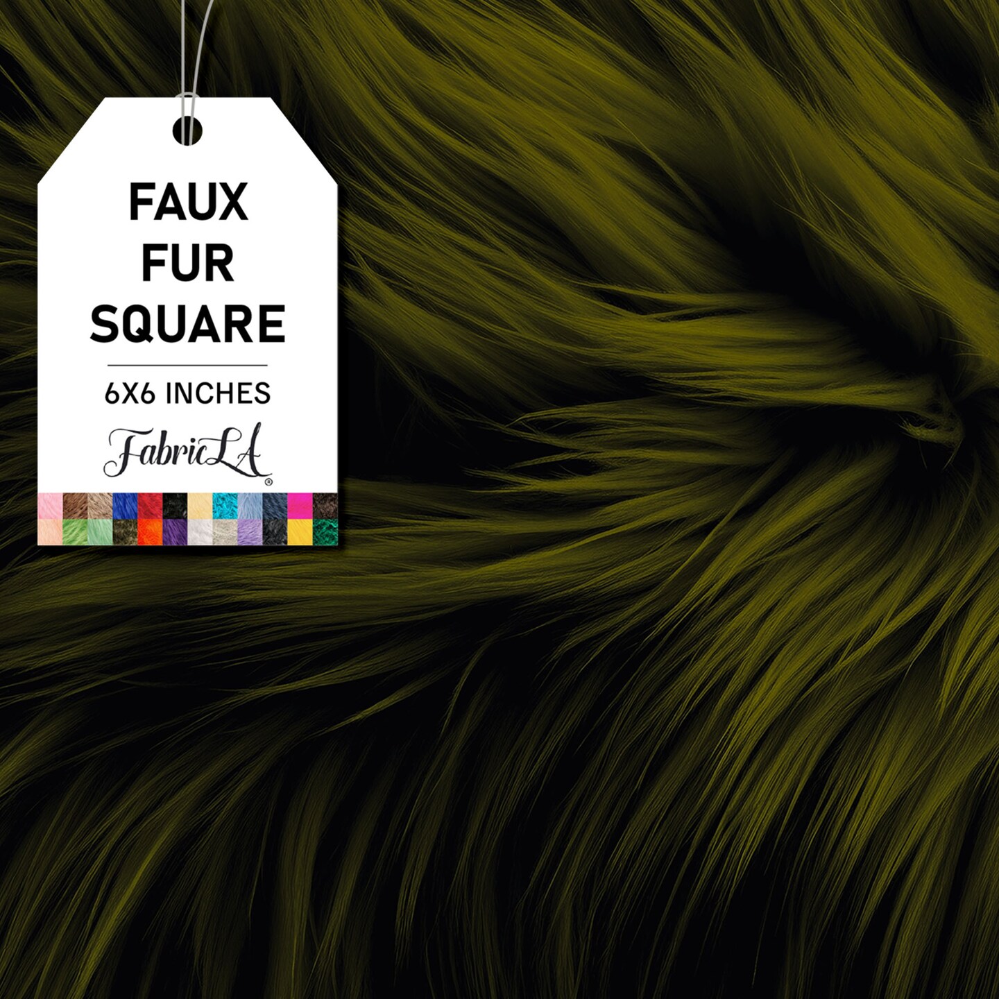 FabricLA | Faux Fur Fabric Square | 6" X 6" Inch Wide Pre-Cut Shaggy | Fake Fur Fabric | DIY, Craft Fur Decoration, Fashion Accessory, Hobby | Olive