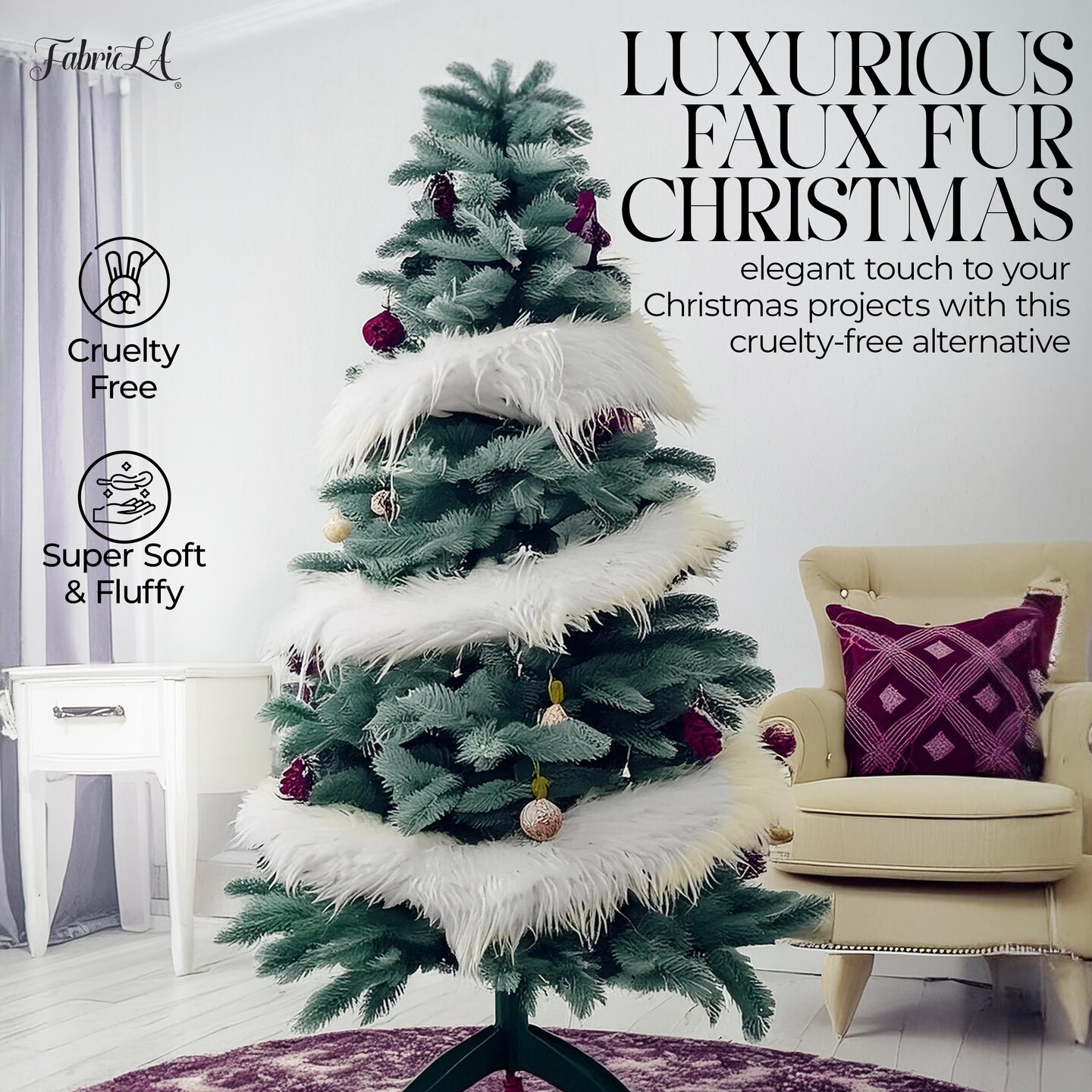 FabricLA Faux Fur Ribbon Trim Fabric - 1" Wide x 36" Long (3 FT) - Soft Christmas Fur Great for Crafting, Sewing, and Decorating - White