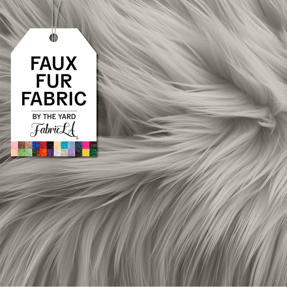 FabricLA | Shaggy Faux Fur | Fabric by The Yard | 180" X 60" Inch Wide | Craft Furry Fabric | Sewing, Apparel, Rugs, Pillows & More | Faux Fluffy Fabric | Platinum Gray, 5 Yard