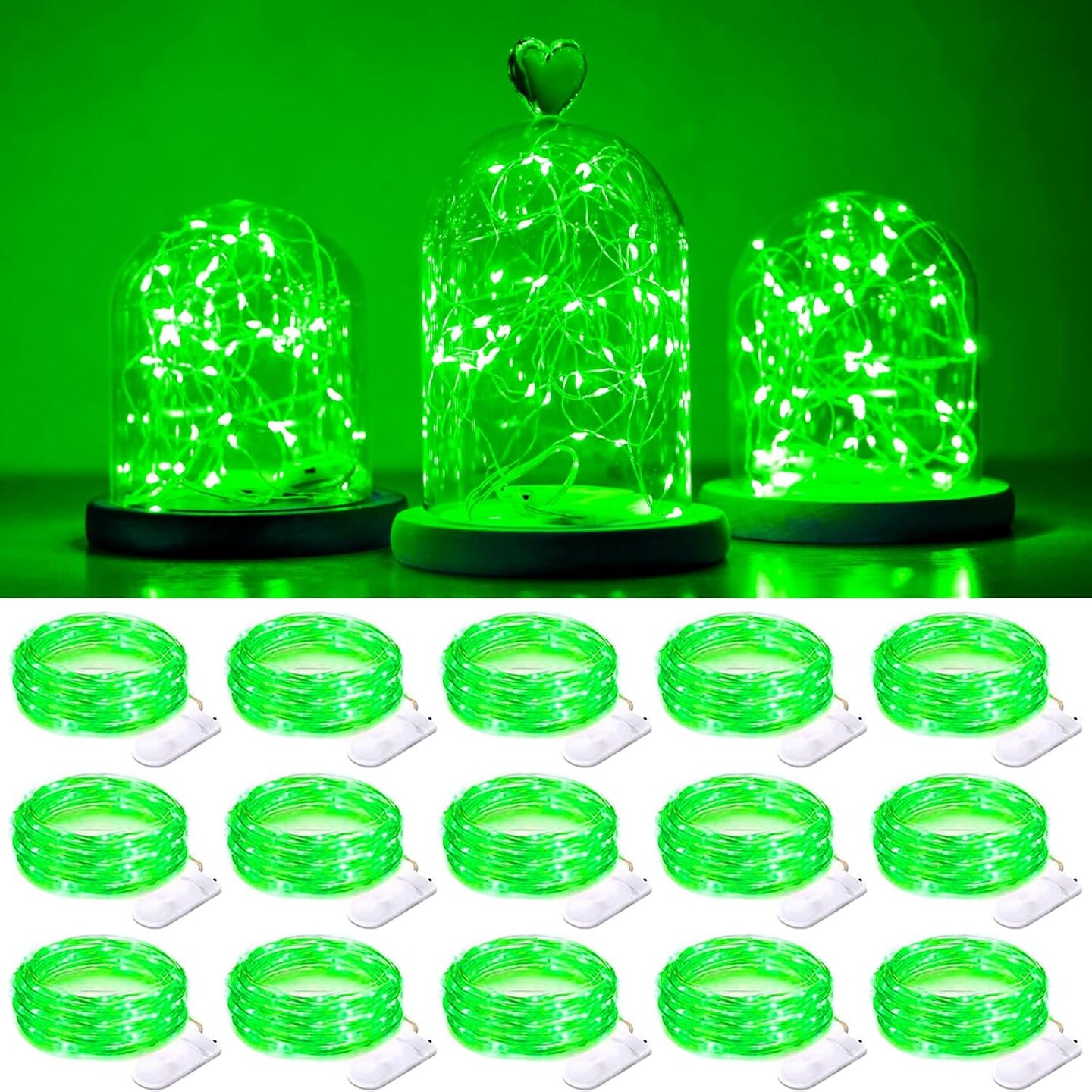 Fairy Lights Battery Operated Starry Firefly Silvery Wire String Lights 15 Pack 7.2ft 20 LED Jar Table Centerpiece for Wedding Christmas Halloween Party Decoration (Green)