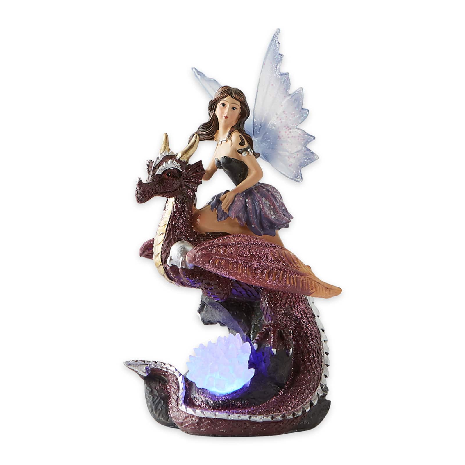 Fairy Riding Dragon Figurine With Light-Up Crystals 4.5" x 4" x 7.5"