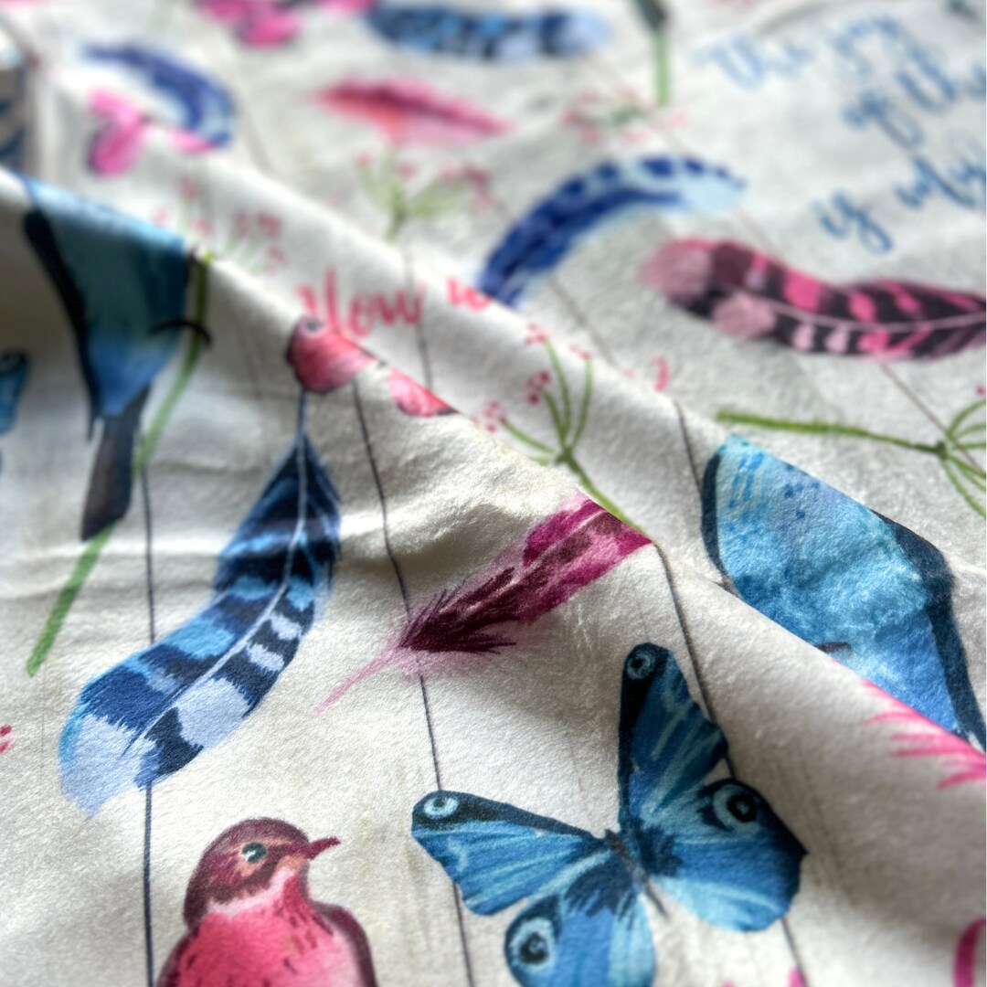Faith Birds and Butterflies Silky Premium Fleece No-Sew Throw Kit (50 x 60) (Harbor Blue)