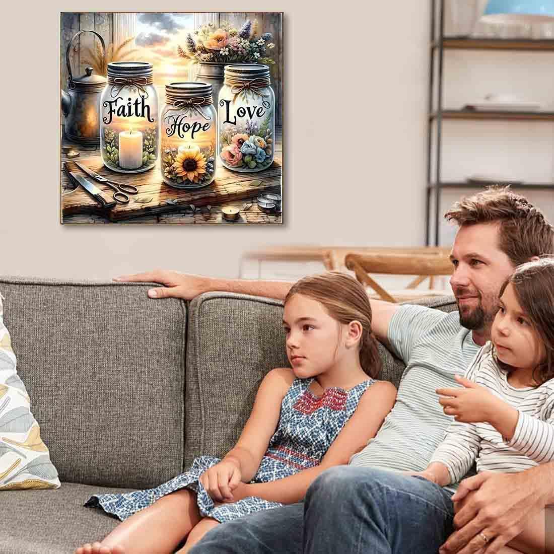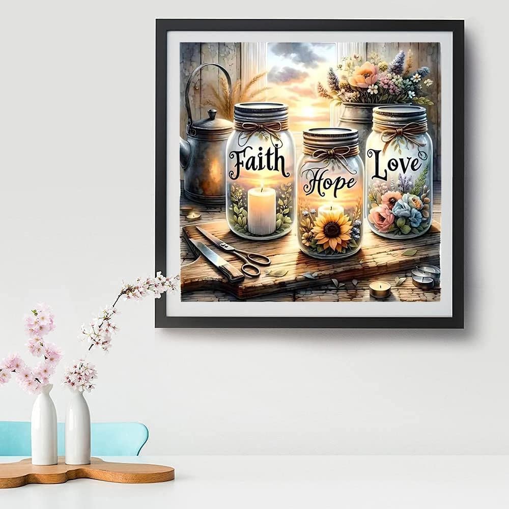 Faith, Hope, Love Stamped Cross Stitch Kit – Wishing Bottle Embroidery Kit for Beginners & Adults, 11CT Pre-Printed Canvas with Threads & Needles, DIY Arts & Crafts, 13.7×13.7 Inch
