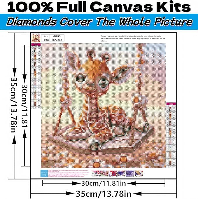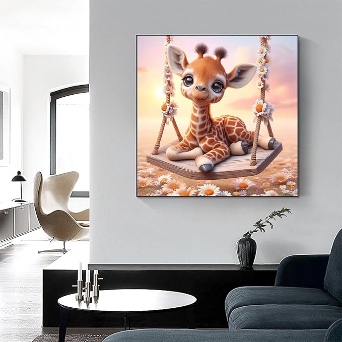 Fall 5D Diamond Art Kits for Adults Beginners,Giraffe Swing DIY Full Round Drill Diamond Painting Kits,Autumn Paint by Diamonds Dots Gem Art Easy,Home Wall Decor 14X14 Inch