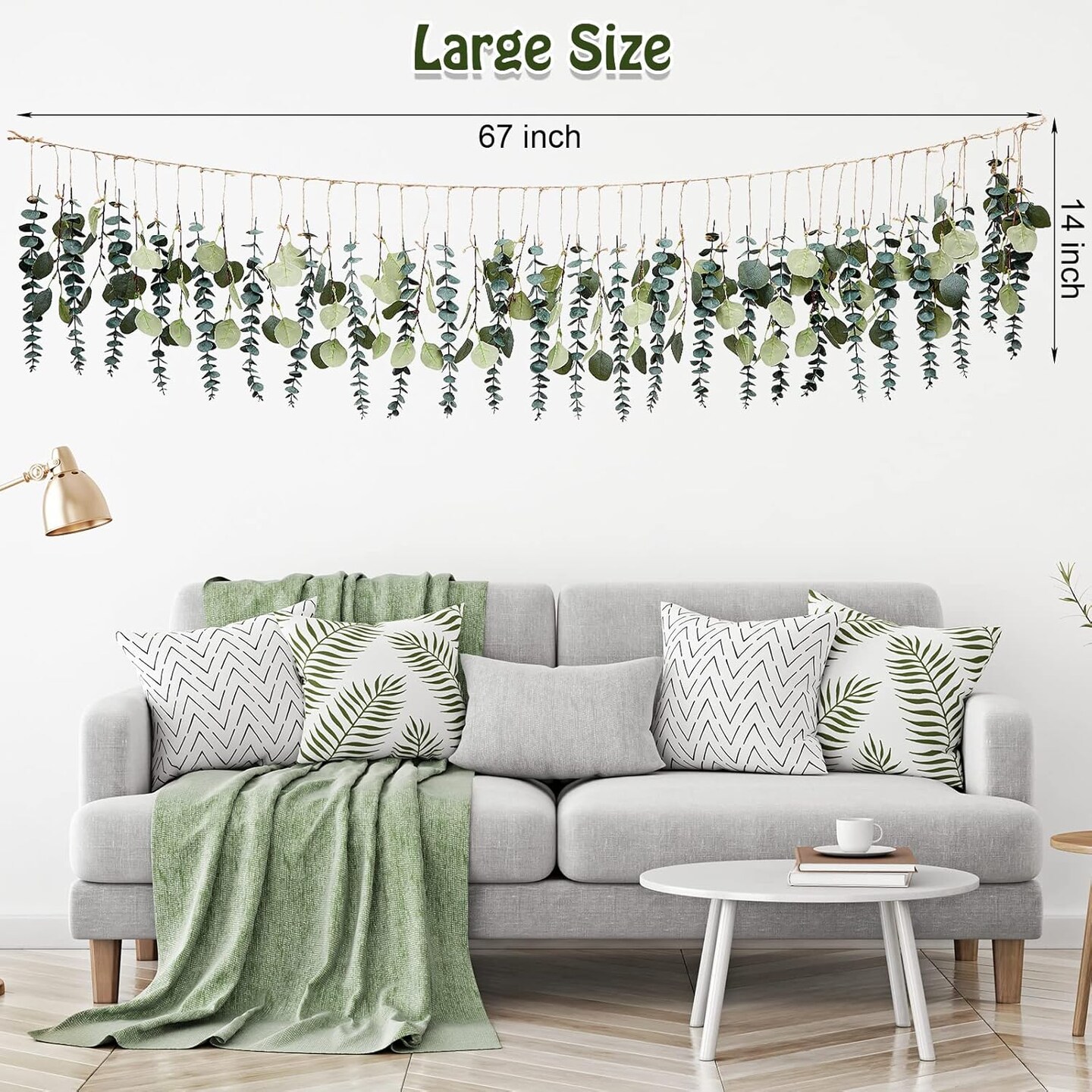 Fall Artificial Eucalyptus Wall Hanging Boho Decor with LED Light Bedroom Wall
