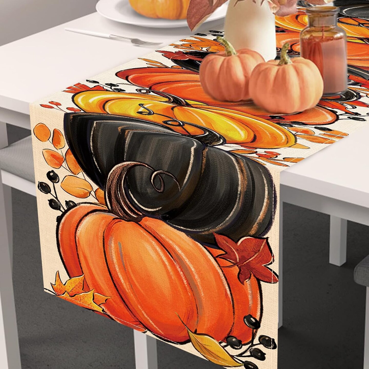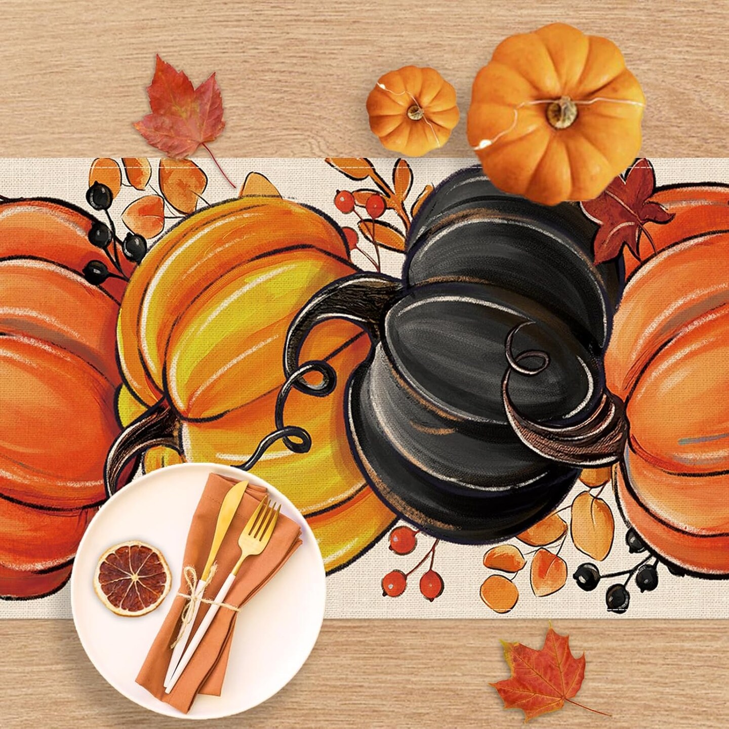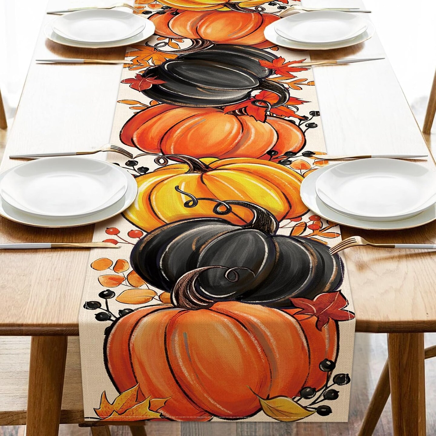 Fall Black Pumpkin Table Runner