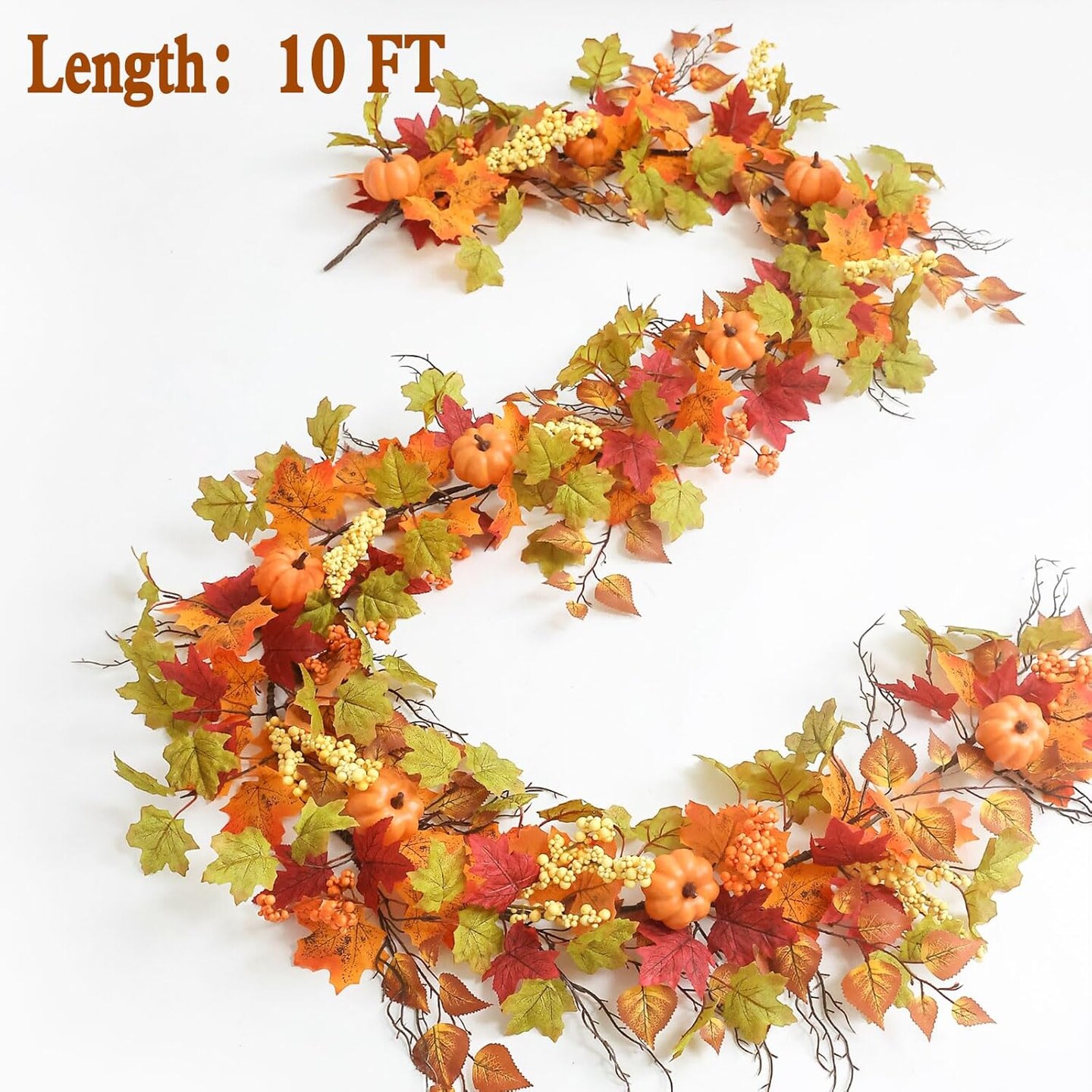 Fall Decor Artificial Maples Leaf Pumpkin Garland 10FT Autumn Maple Vines Garland Thanksgiving Halloween Harvest Decorations for Home Porch Mantle Fireplace Farmhouse Outdoor Indoor (10FT,Maple)
