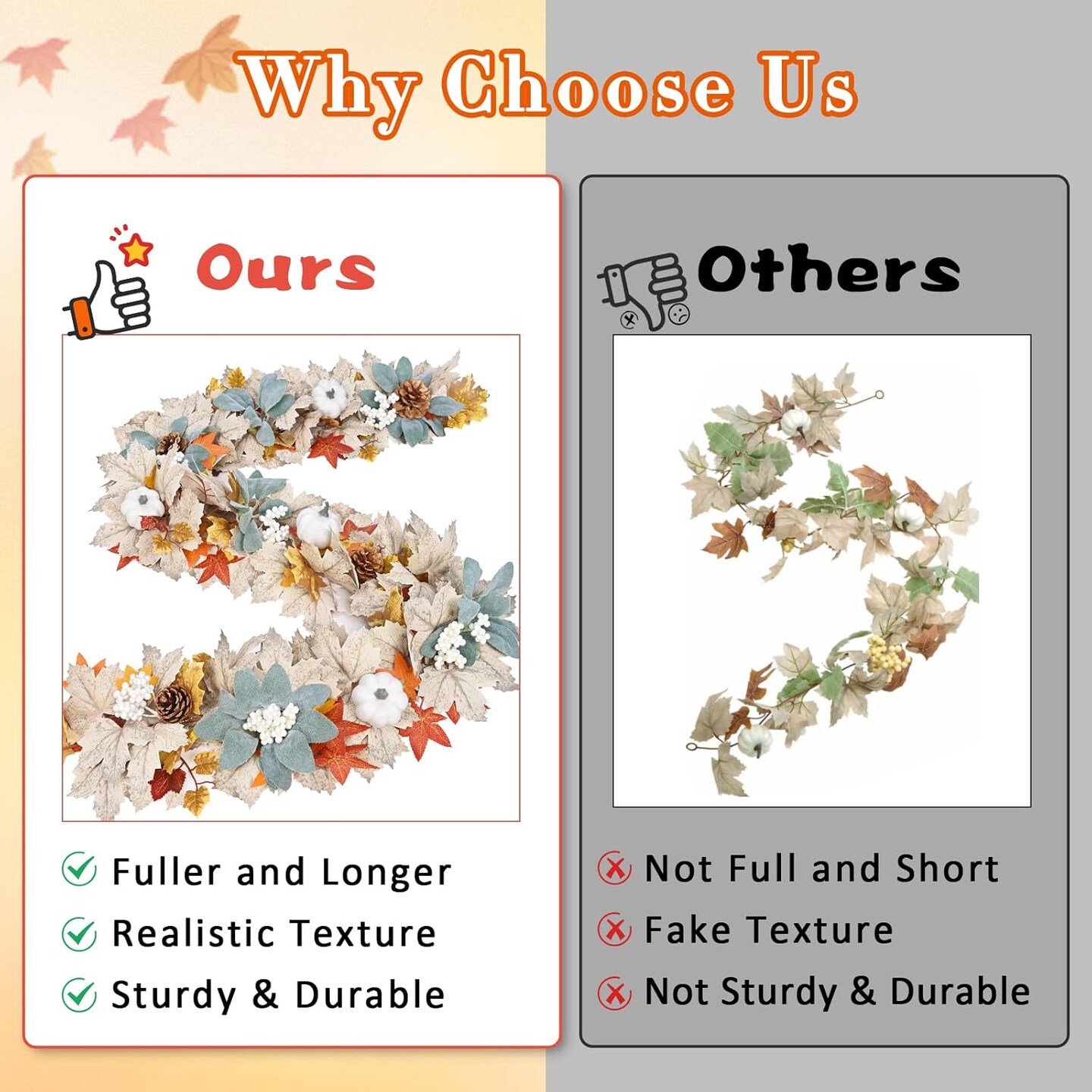 Fall Decor, Fall Garland, 5.9Ft Autumn Maple Leaves Pumpkin Garland