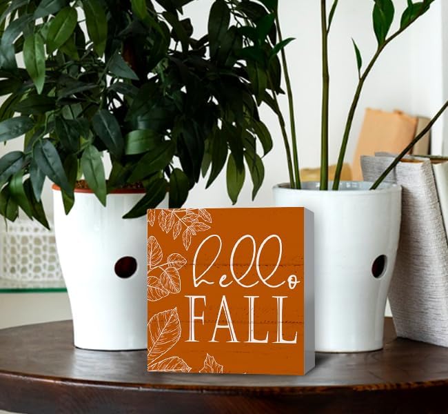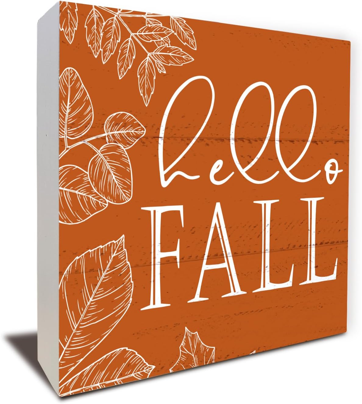 Fall Decor Wood Box Sign Tabletop Decor - 5 X 5 Inch