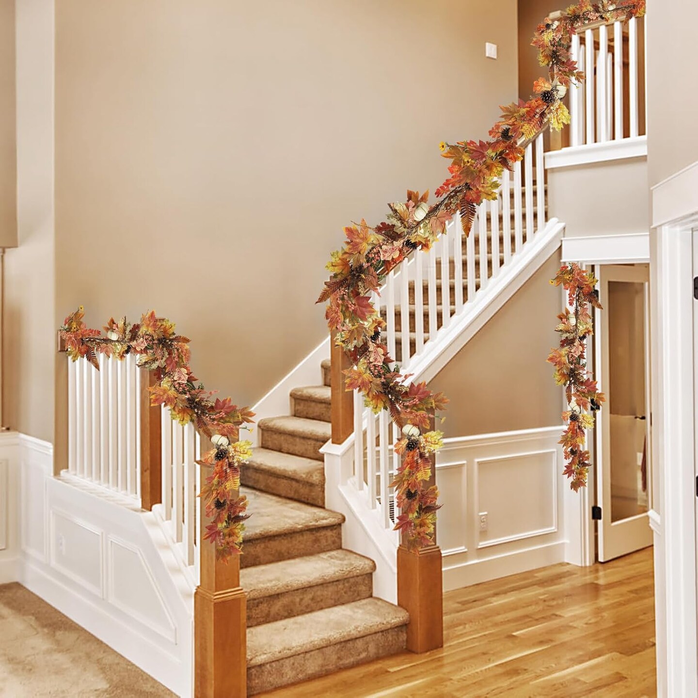 Fall Garland - 6 Ft Maple Leaf Pumpkin Berry Garland - Stlye 2