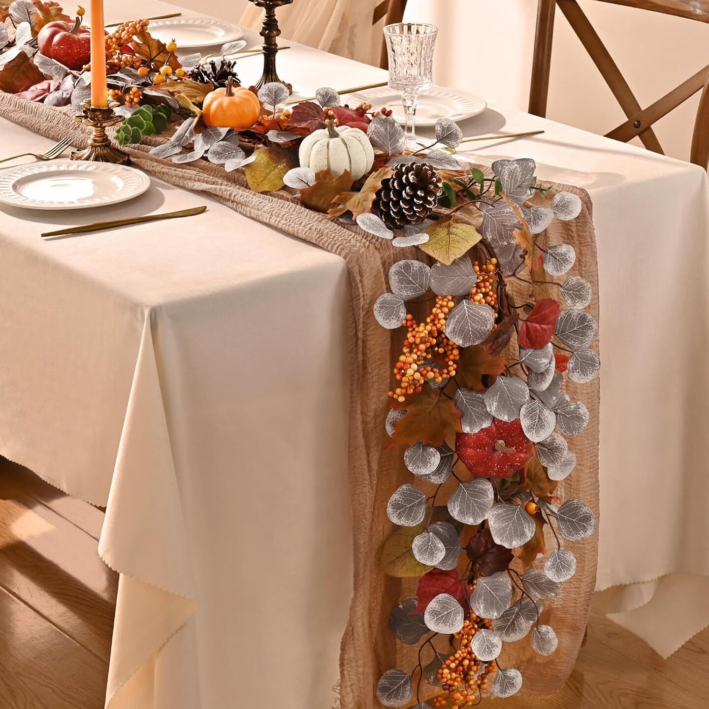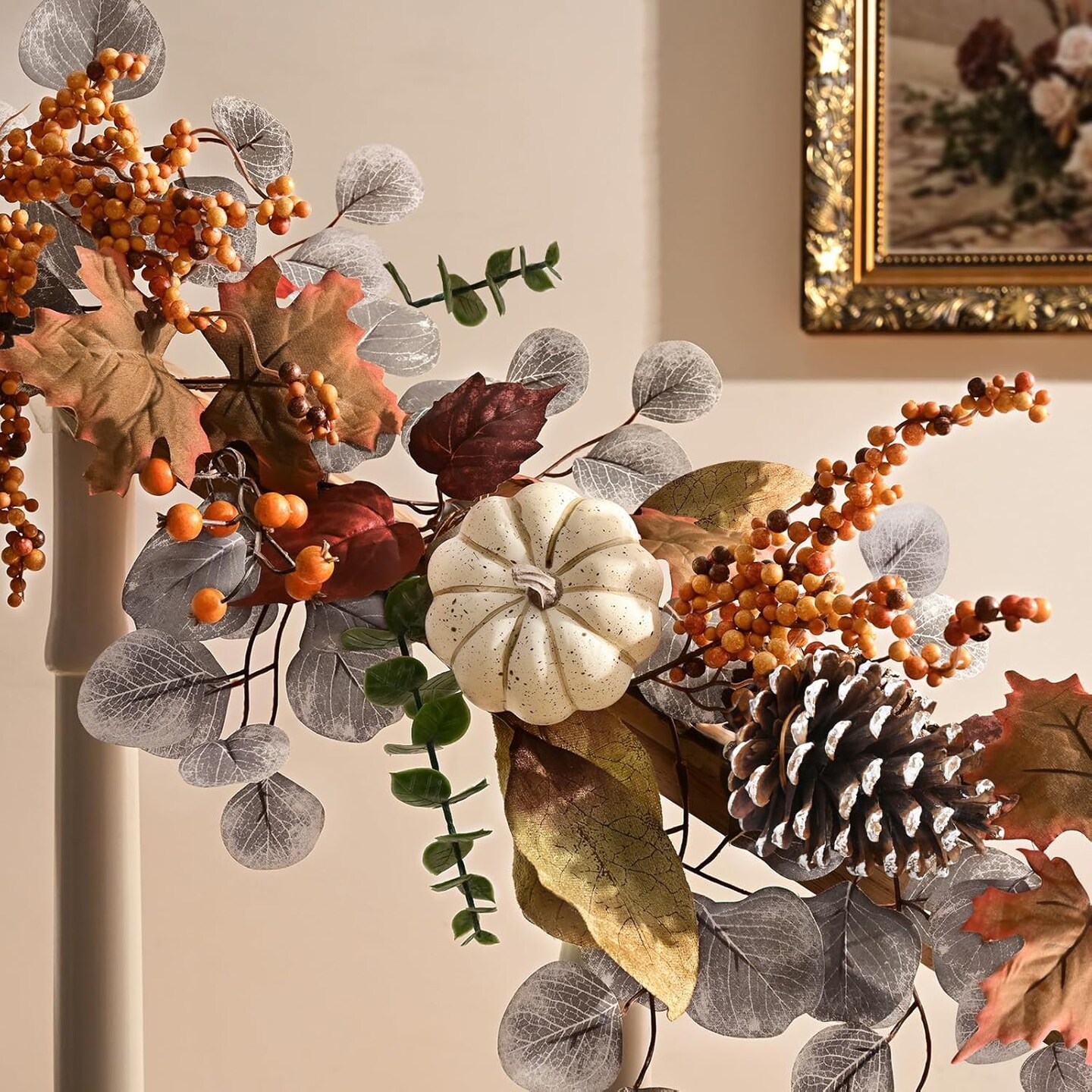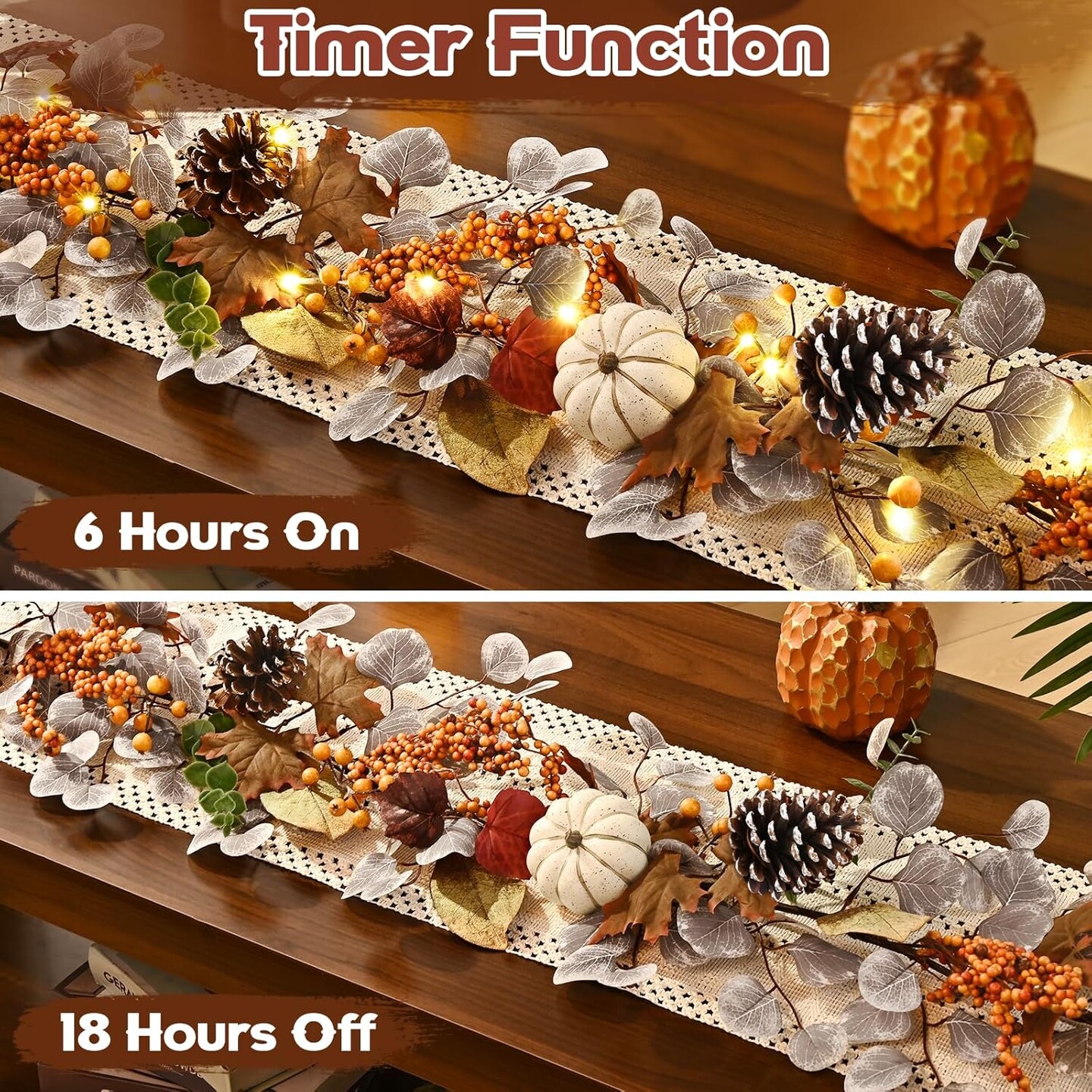 Fall Garland for Mantle, 6 Ft Fall Garland with Lights, Autumn Leaves Garland
