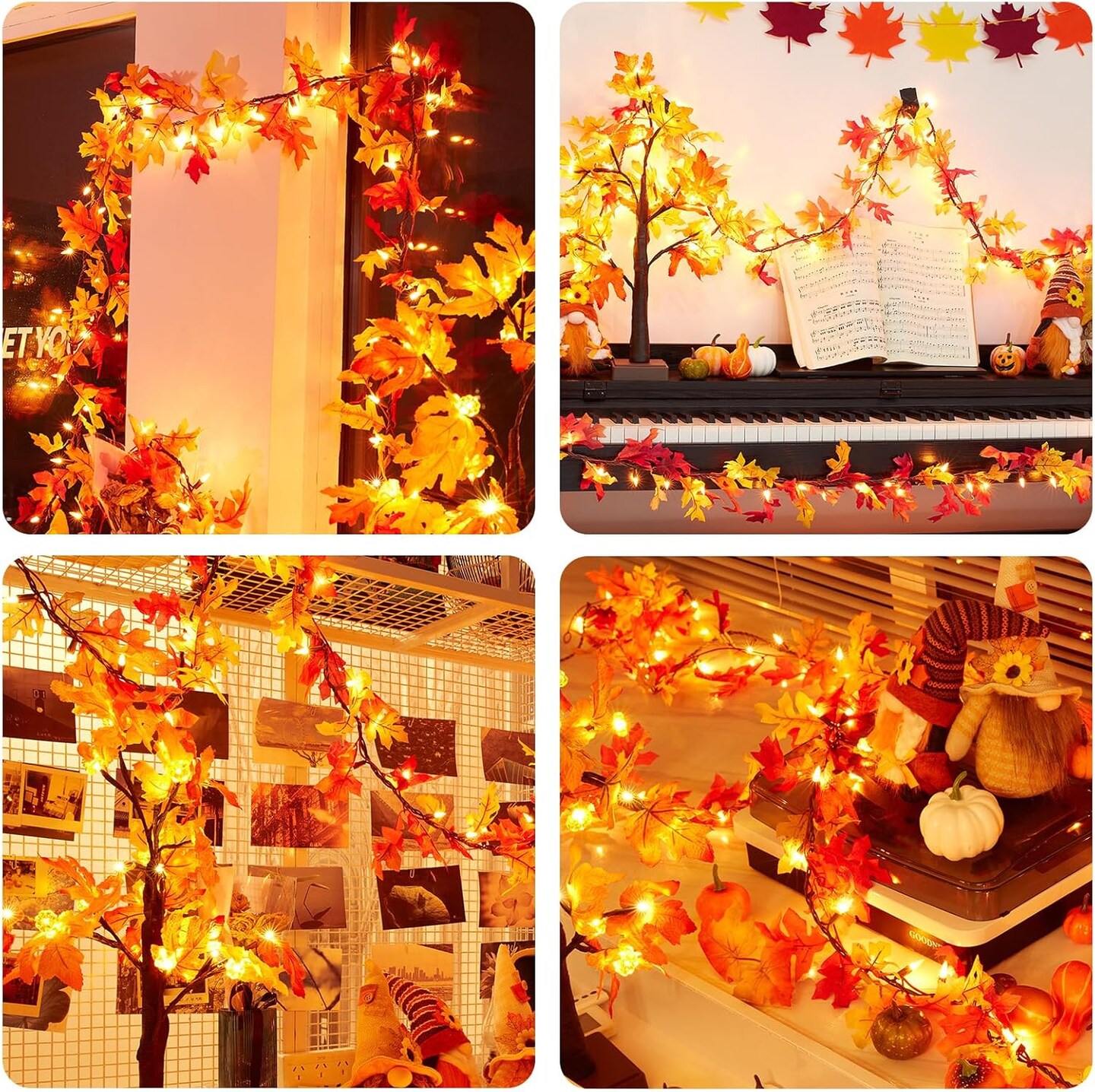 Fall Garland with Lights 9Ft Plug in Lighted