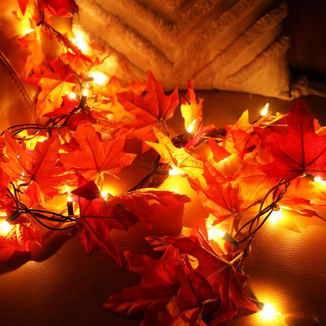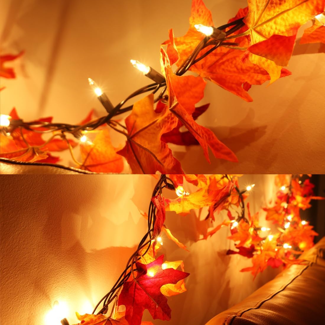 Fall Garland with Plug in String Lights - 50 Bulbs