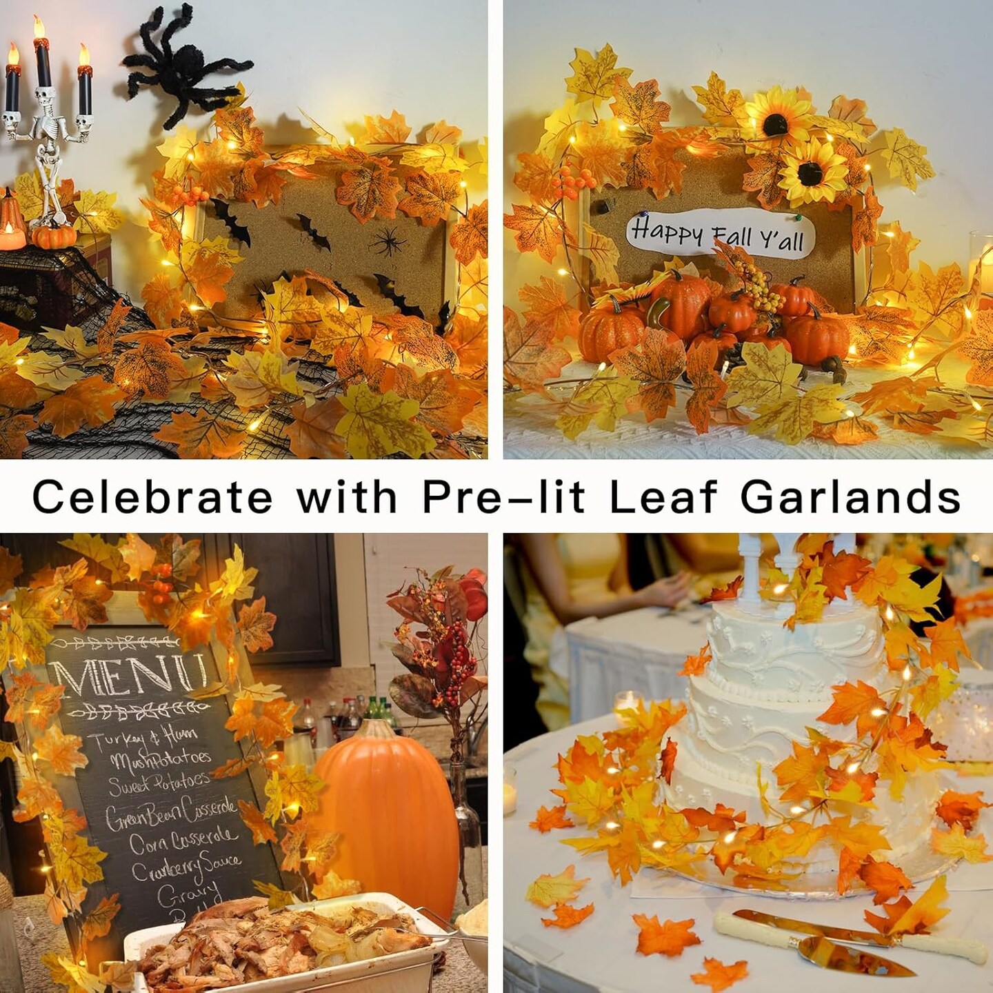 Fall Leaves Garland with Lights, 20LED Battery Operated Fall Lights