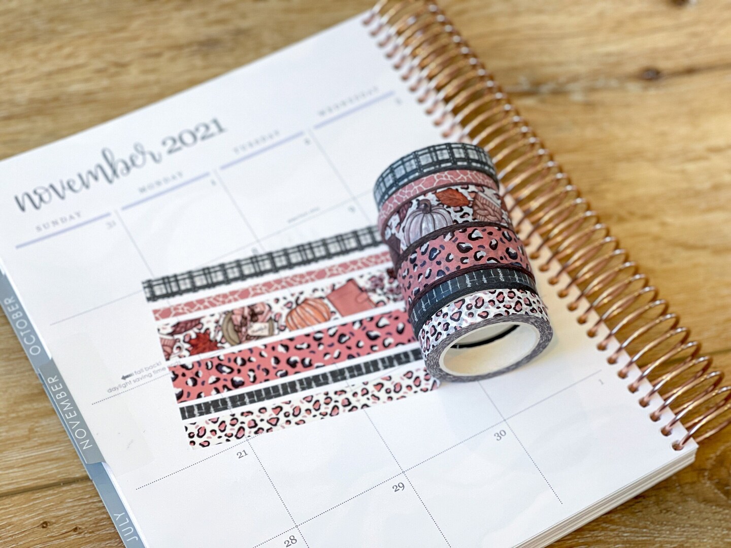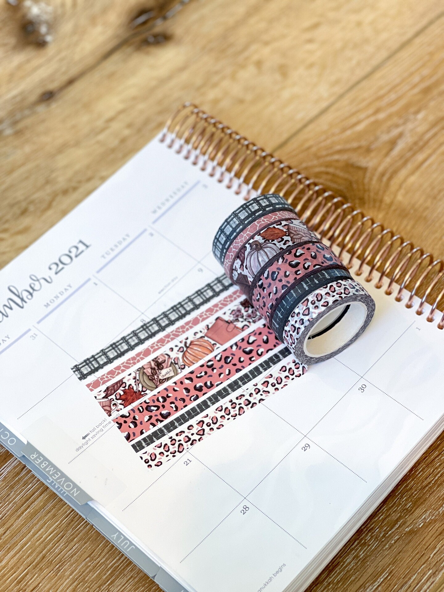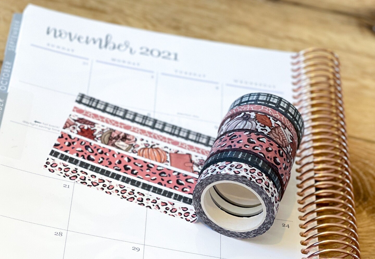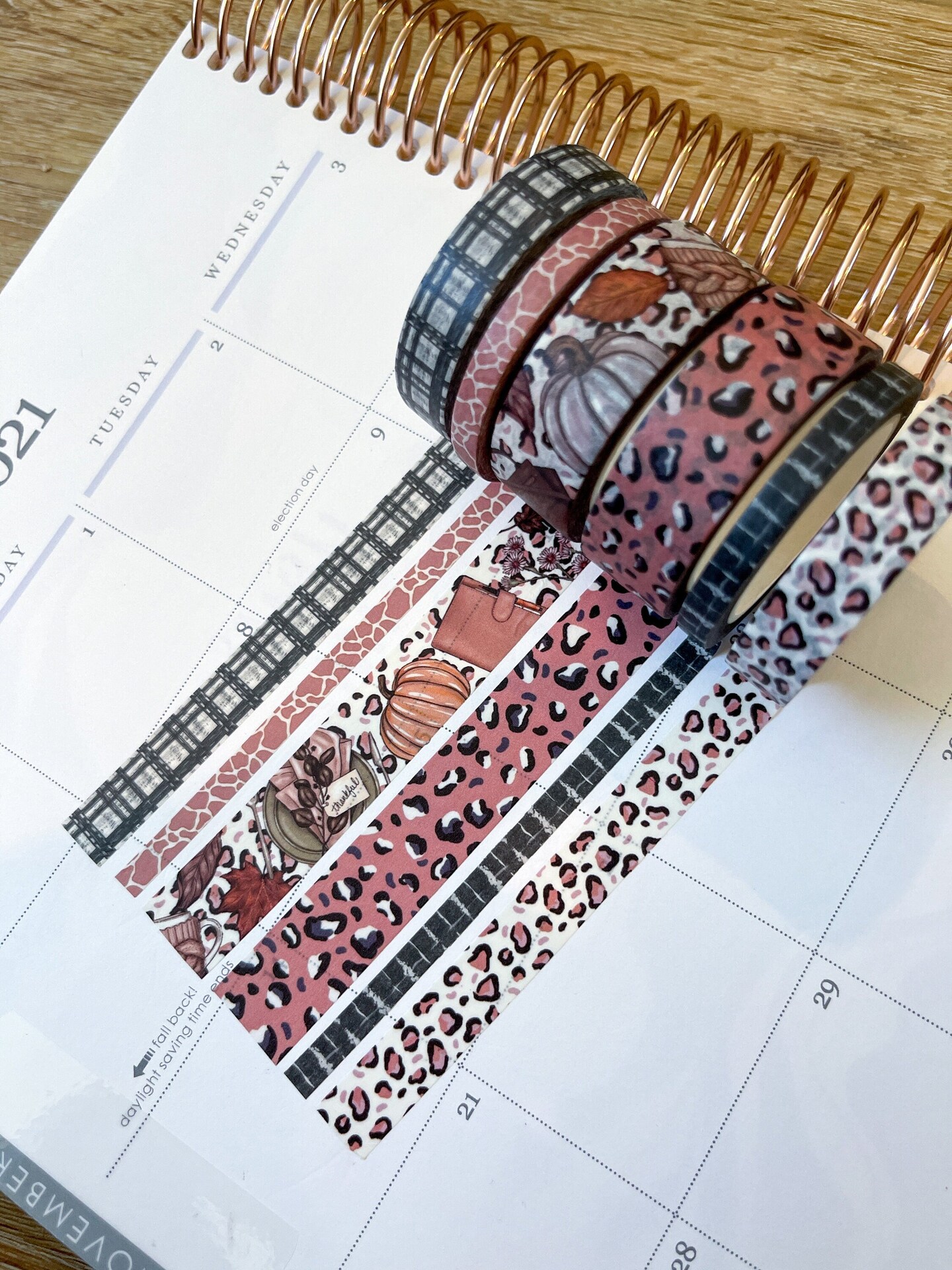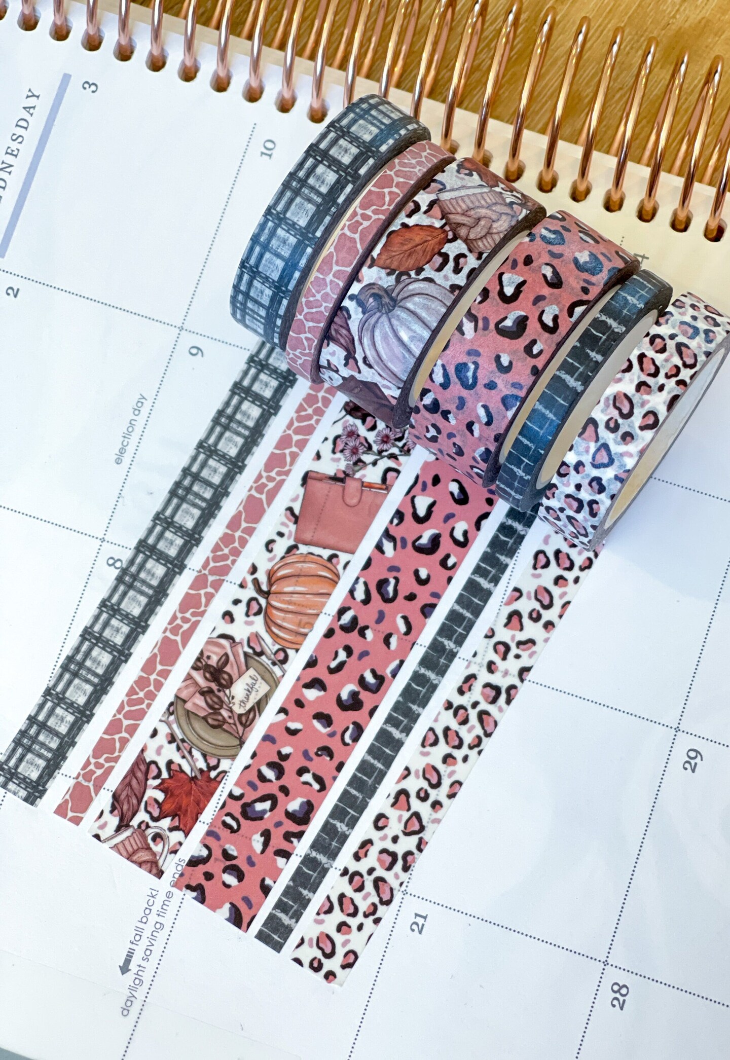 Fall Leopard Animal Print Autumn Mauve Washi Tape Set (#W034)