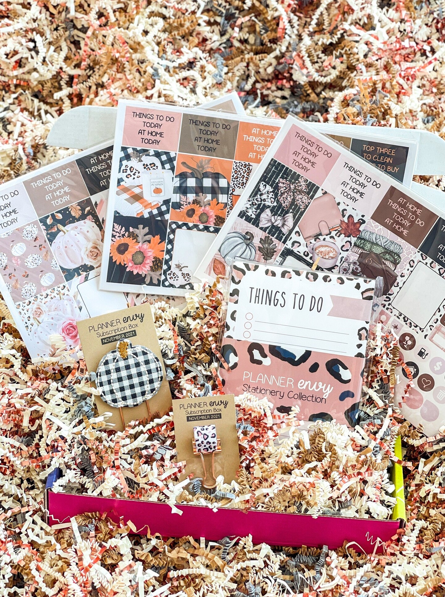 Fall Neutral Animal Print & Buffalo Plaid Check Themed Box of Planner Stickers & Accessories (#SUB2021011)
