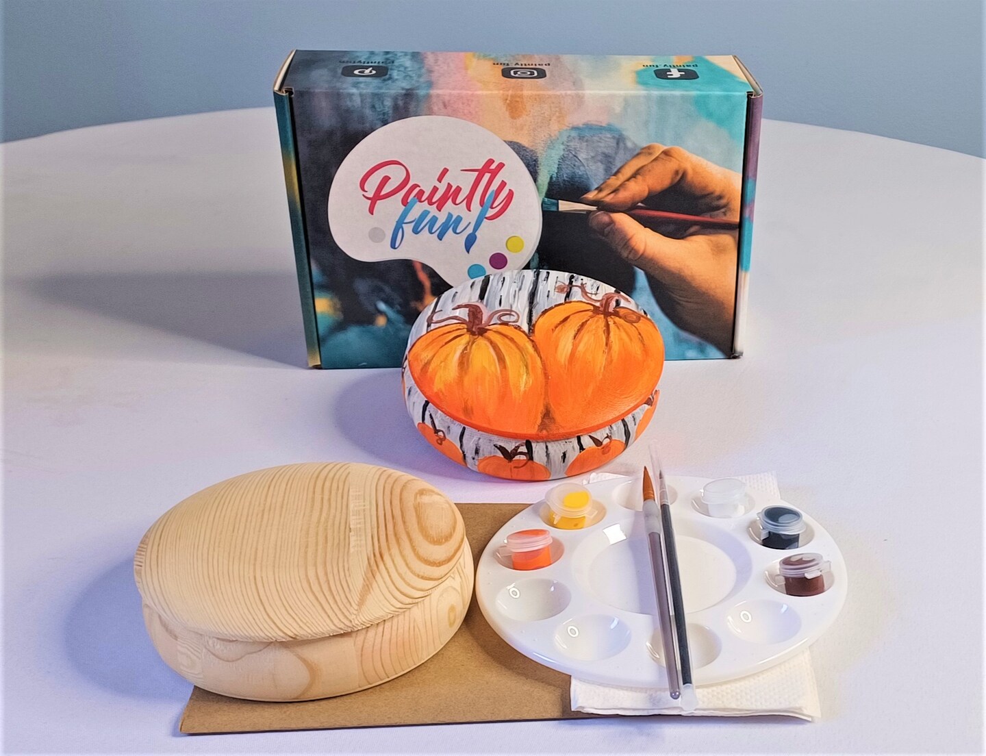 Fall Paint Kit - Pumpkin Display Tabletop Trinket Box Painting Kit & Video Lesson, DIY Craft, Art Gift Set, Beginner Painting, Paint At Home