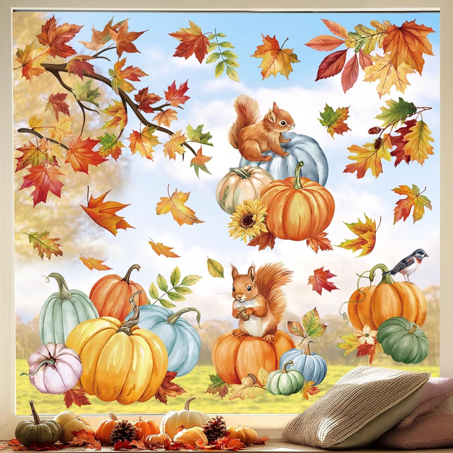 Fall Pumpkin Leaves Window Sticker Decal - Pumpkin Leaves