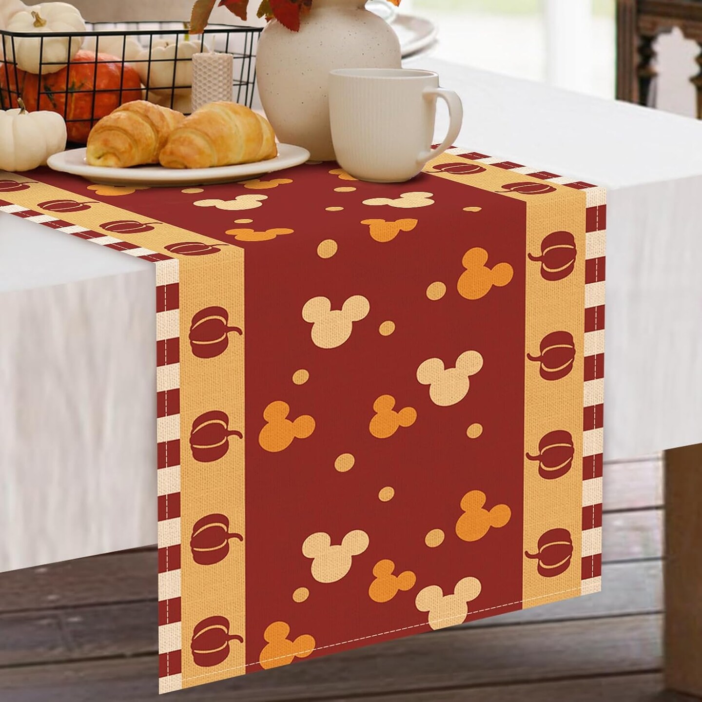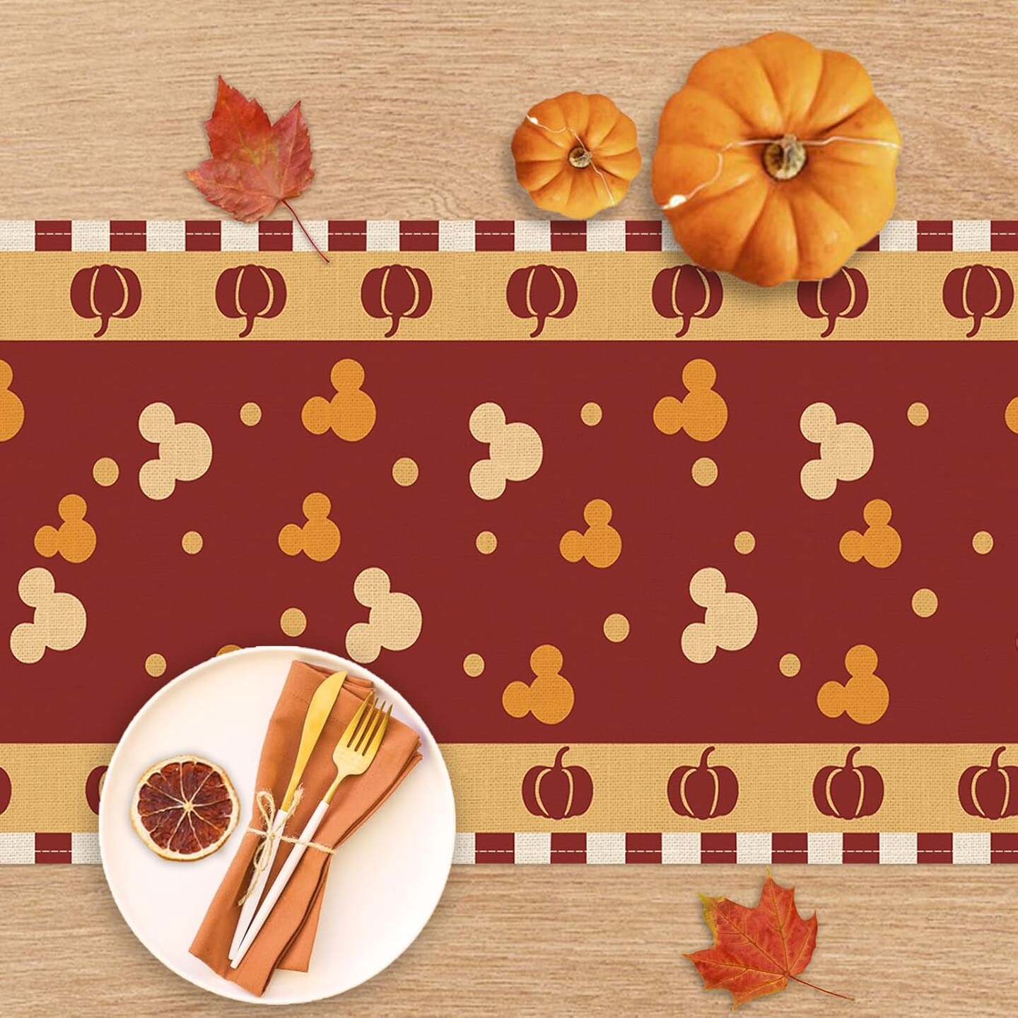 Fall Pumpkin Table Runner, Red Autumn Thanksgiving Polka,13 x 72 Inch