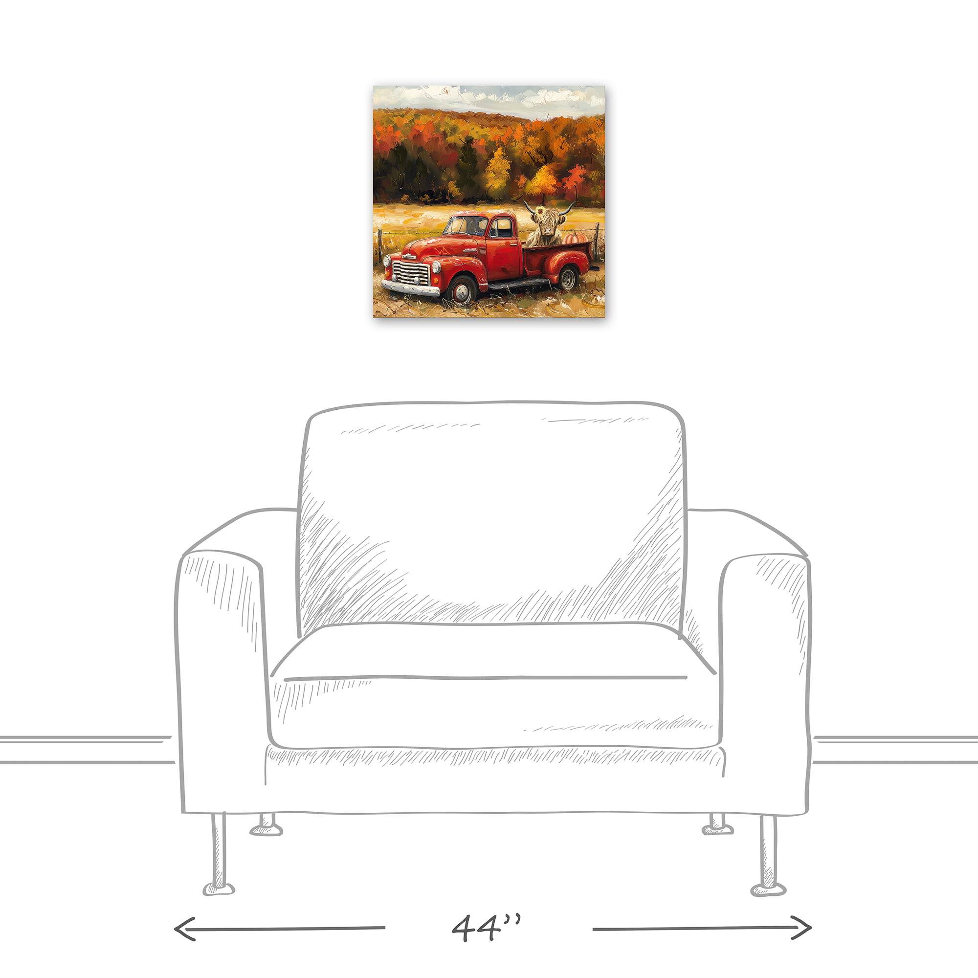 Fall Red Truck Highland 16" x 16" Canvas Wall Art