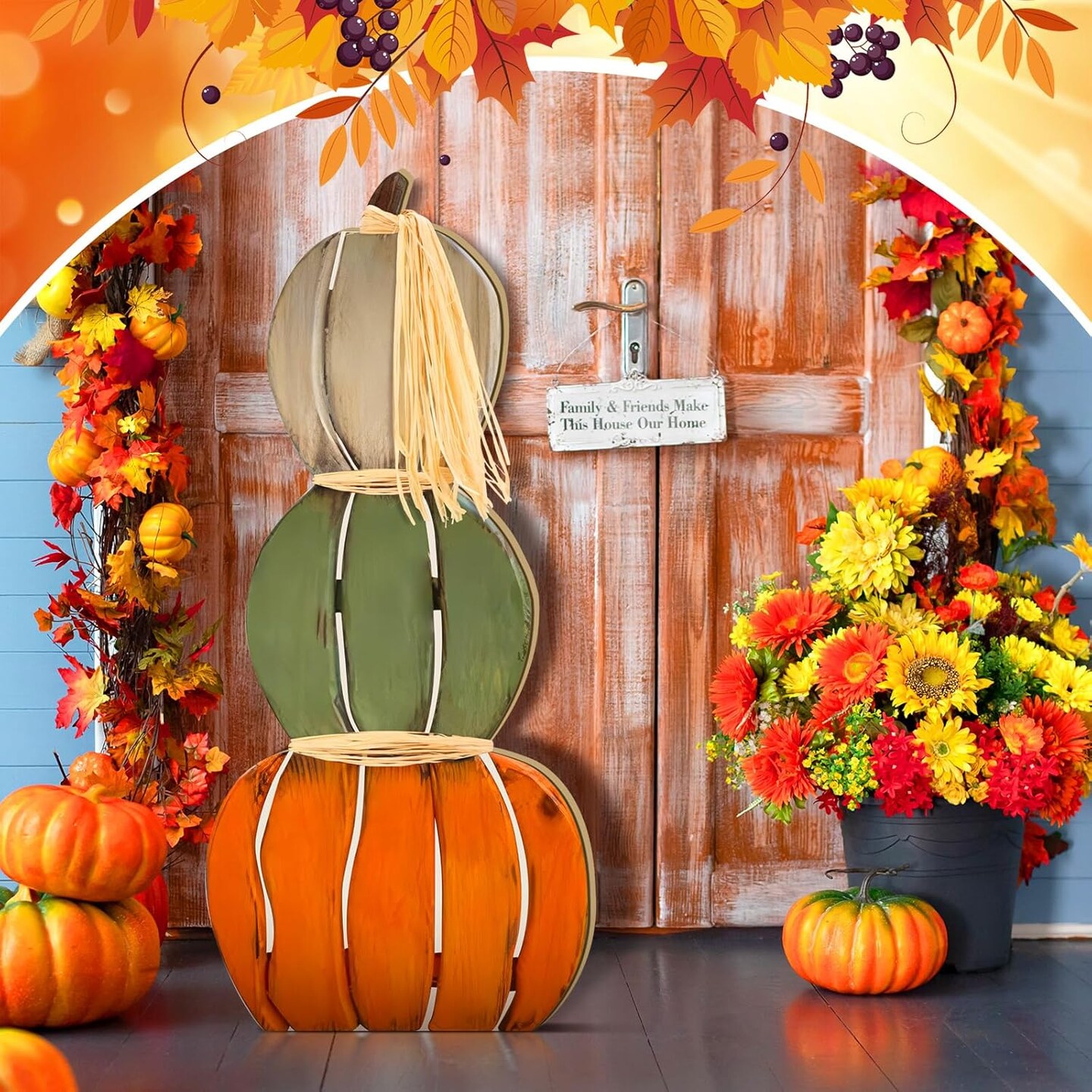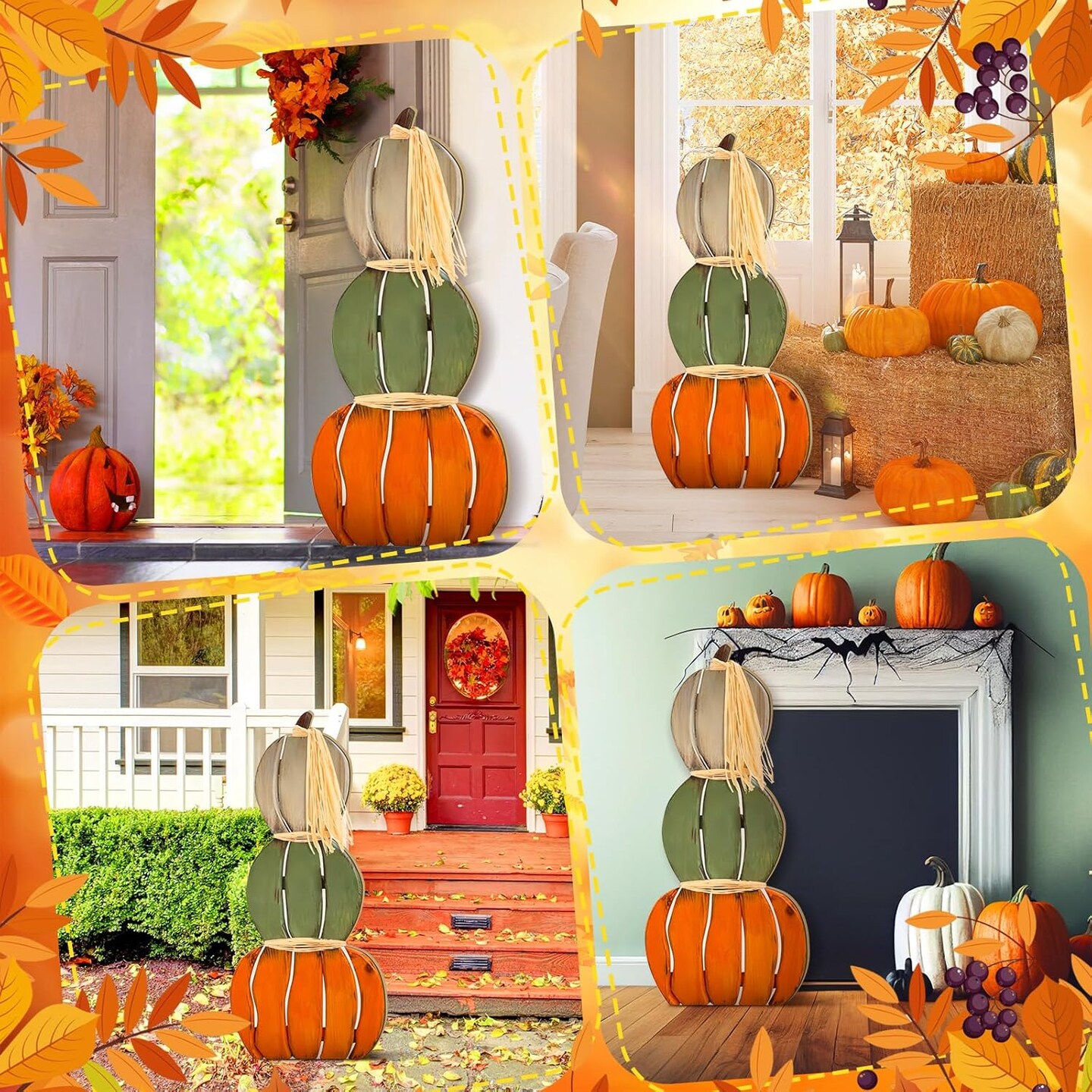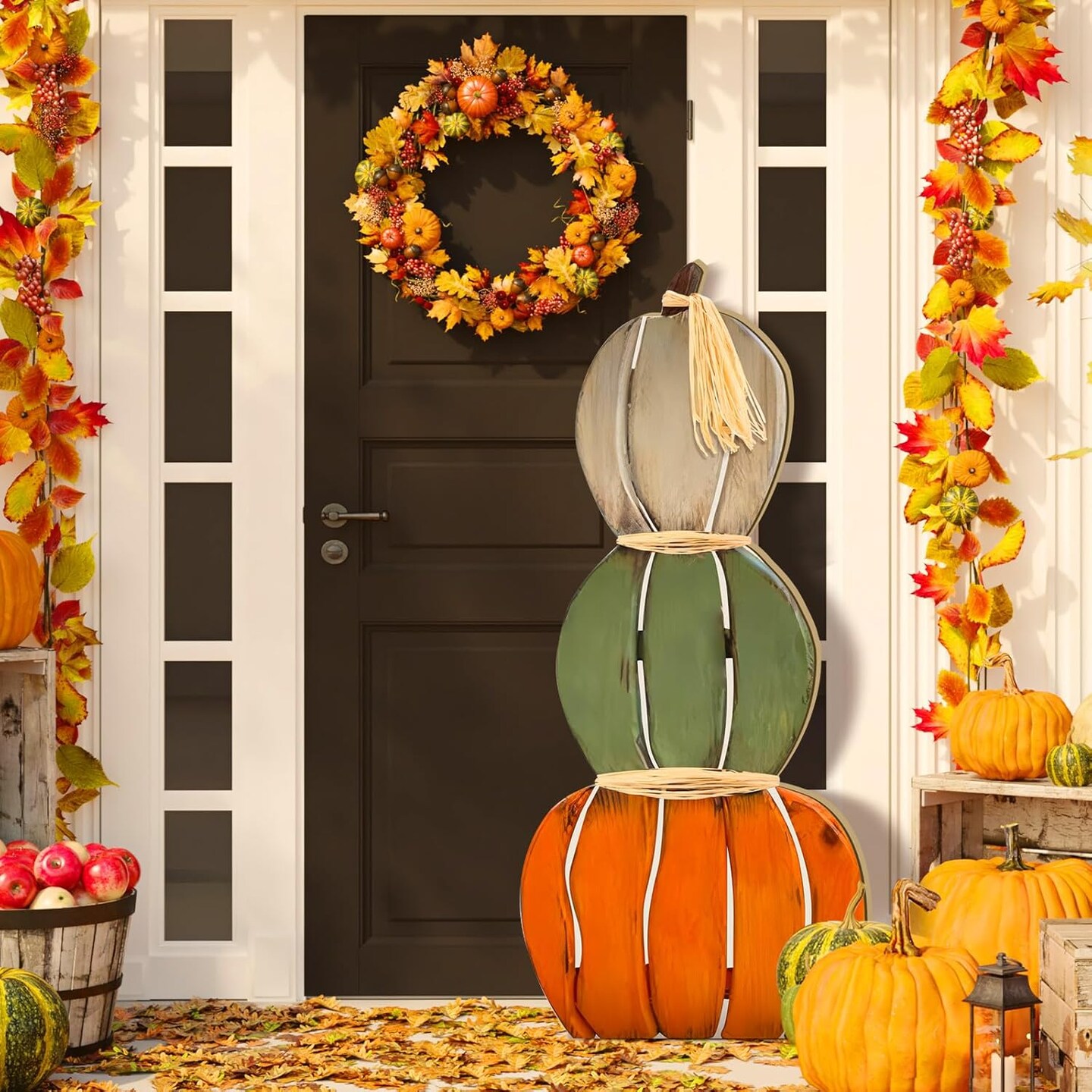 Fall Stacked Pumpkins for Home Front Porch Decor(white, green, and orange)