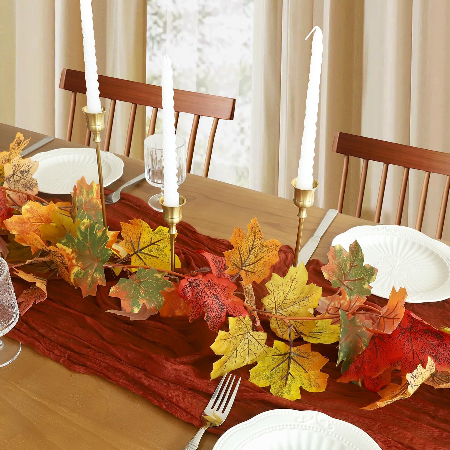 Fall Table Runner, 10FT Thanksgiving Cheesecloth Table Runner 35*120inch Terracotta Table Runners for Fall Wedding Baby Shower Friendsgiving Thanksgivig Home Kitchen Table Decorations