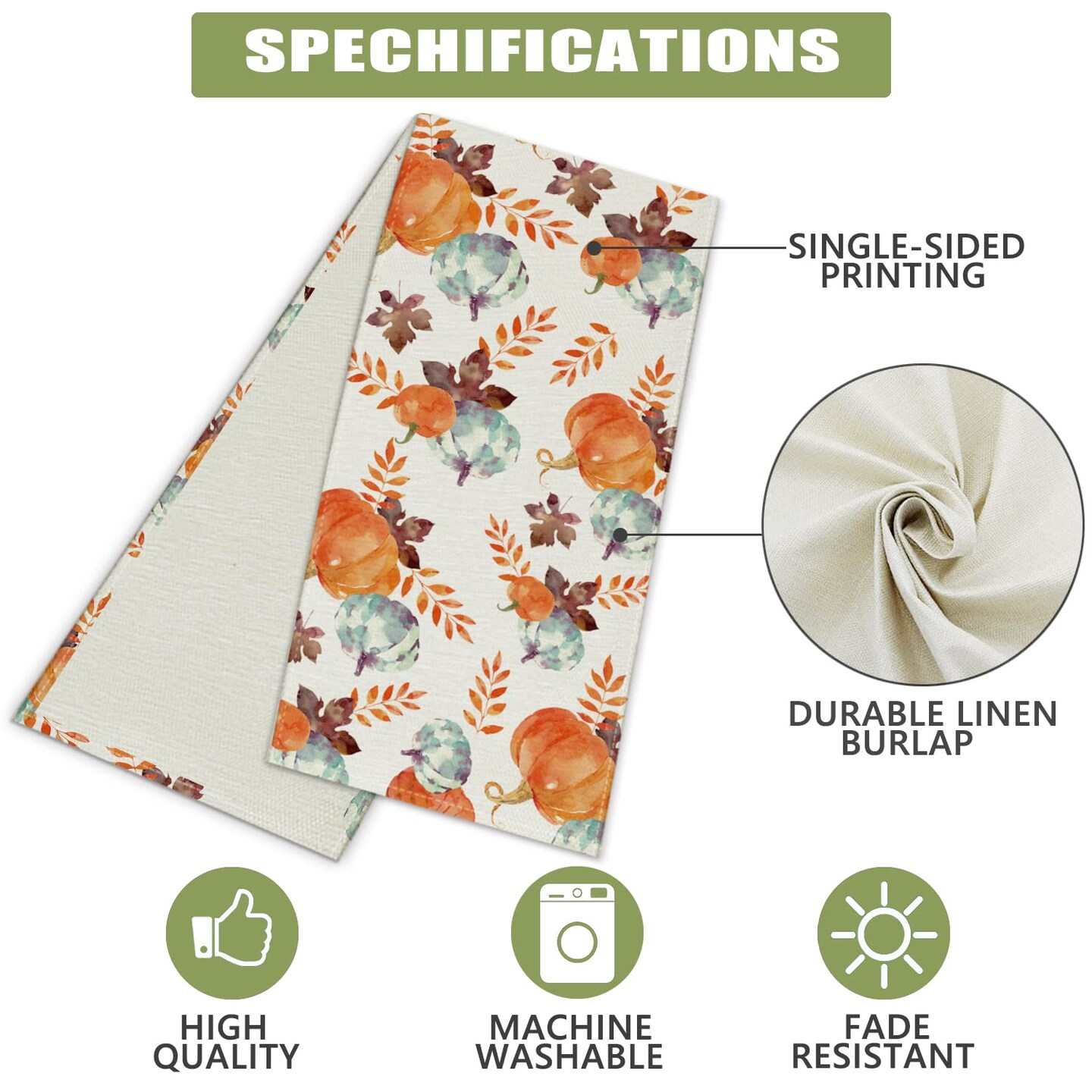 Fall Table Runner Watercolor Pumpkin Autumn Harvest Thanksgiving Table Runners Holiday Dining Room Kitchen Table Party Decoration 13 x 72 Inch