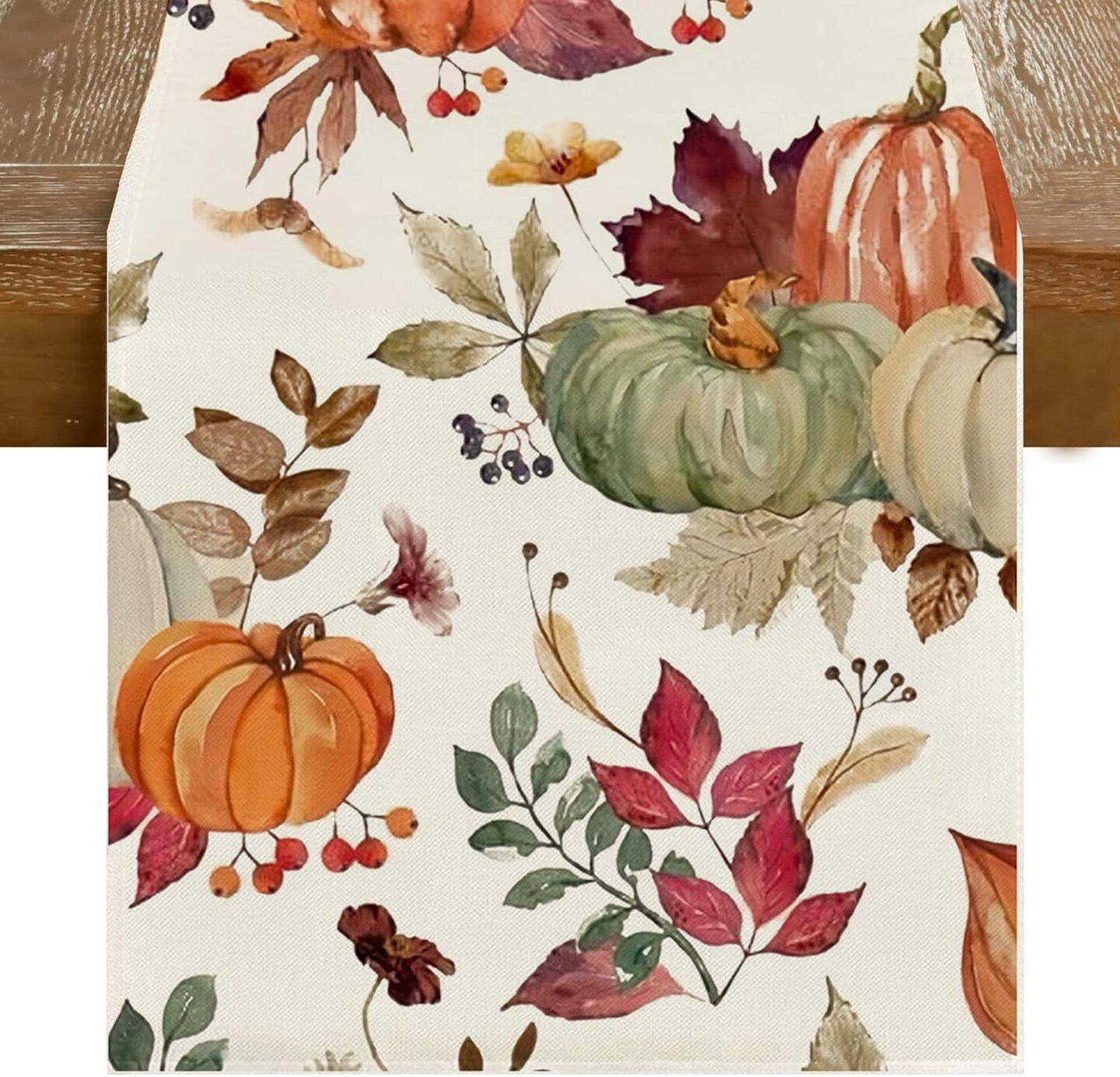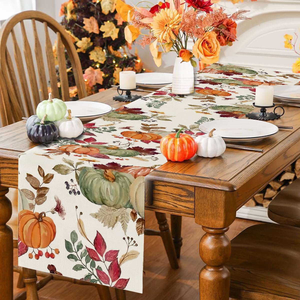 Fall Table Runner,Orange Sage Pumpkin Table Runners 72 Inches Long, 13"x72"