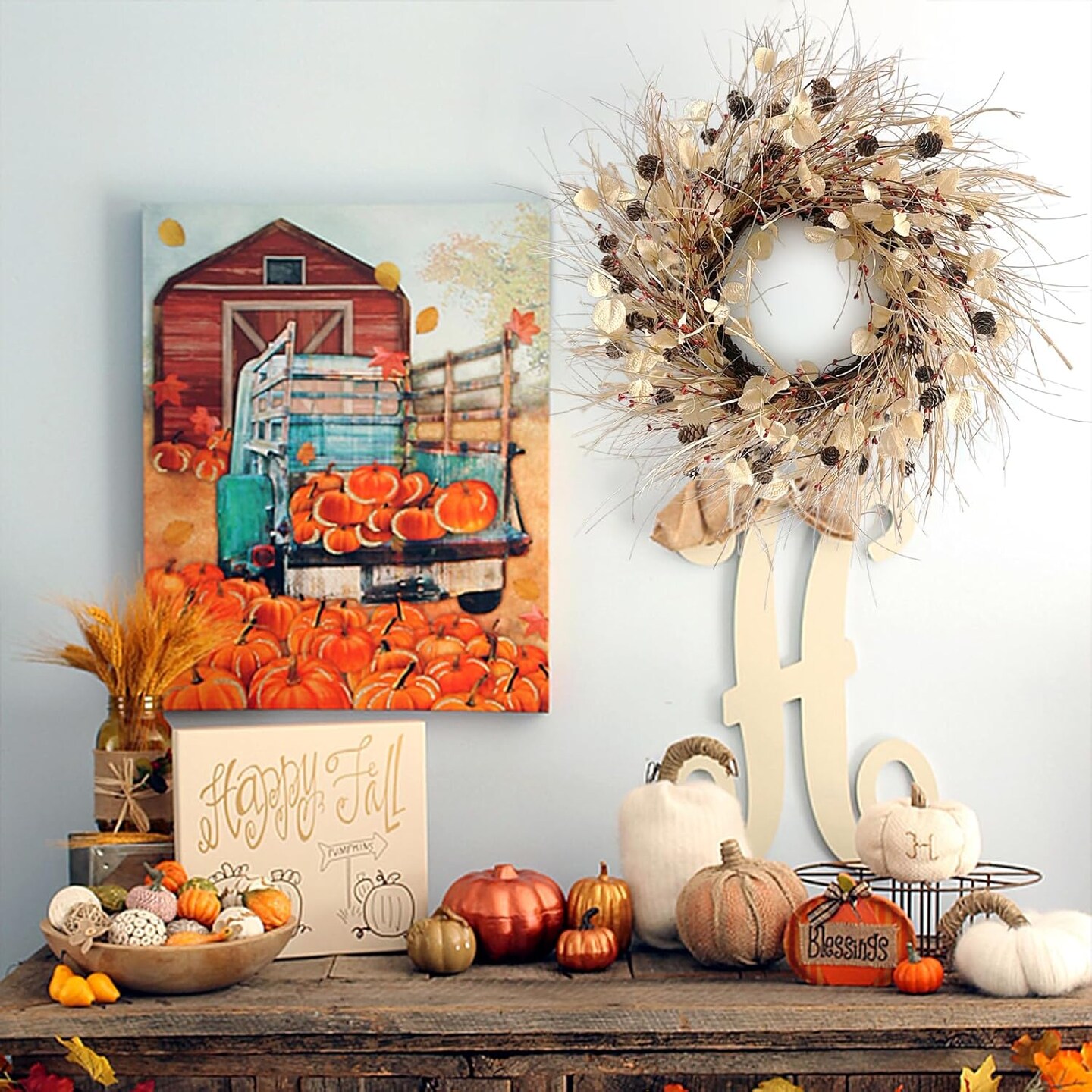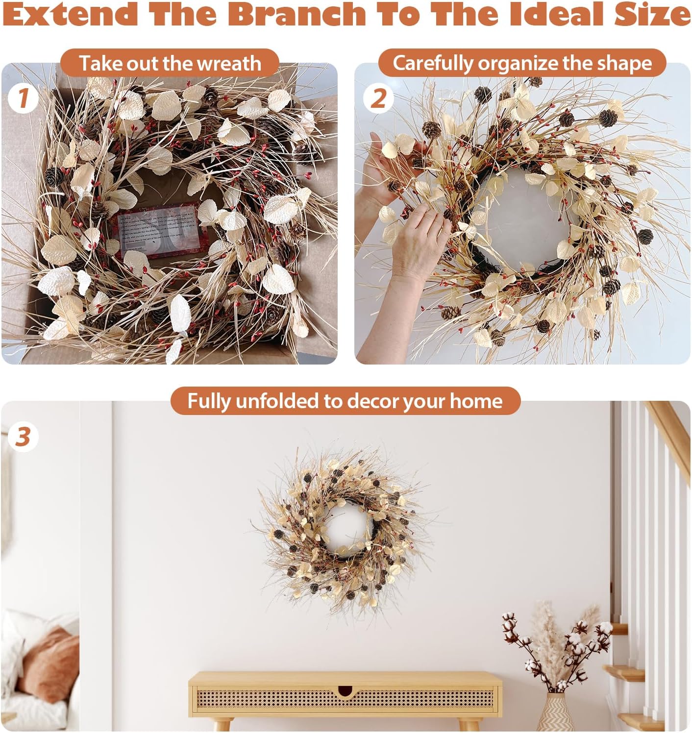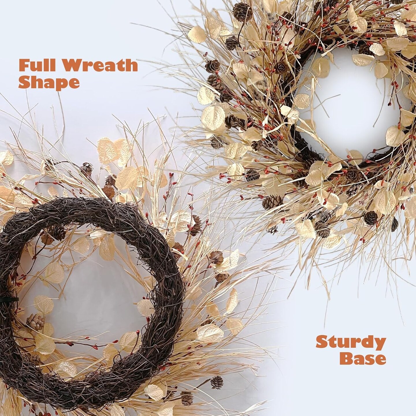 Fall Wreath for Front Door 24 Inch Fall Door Wreaths, Large Autumn Wreath(Withered Yellow)24"D x 24"W x 4"H