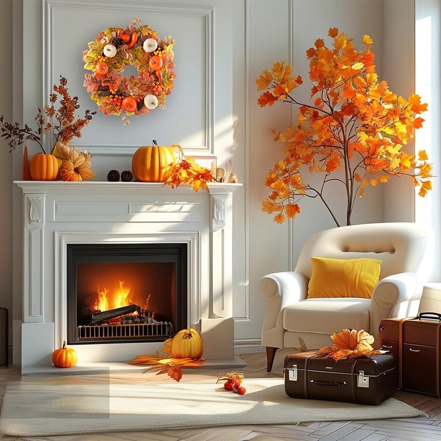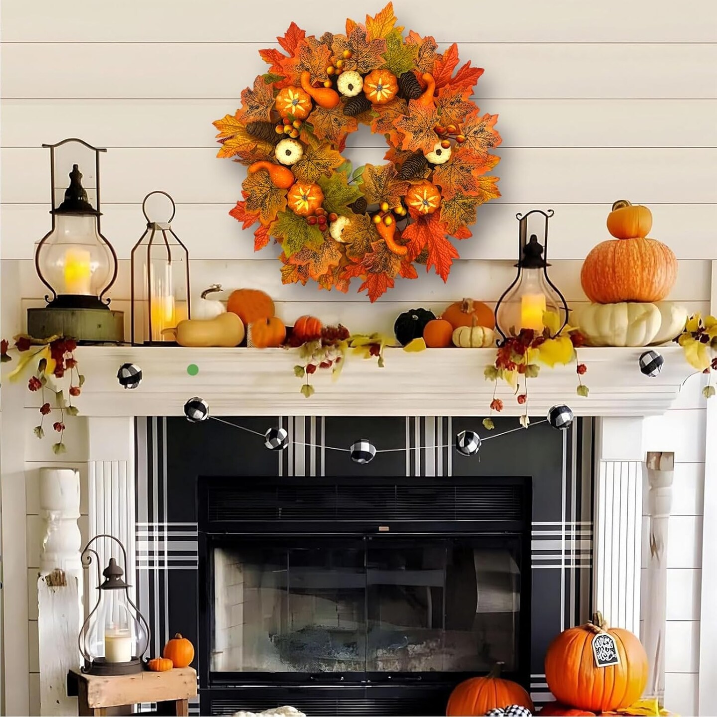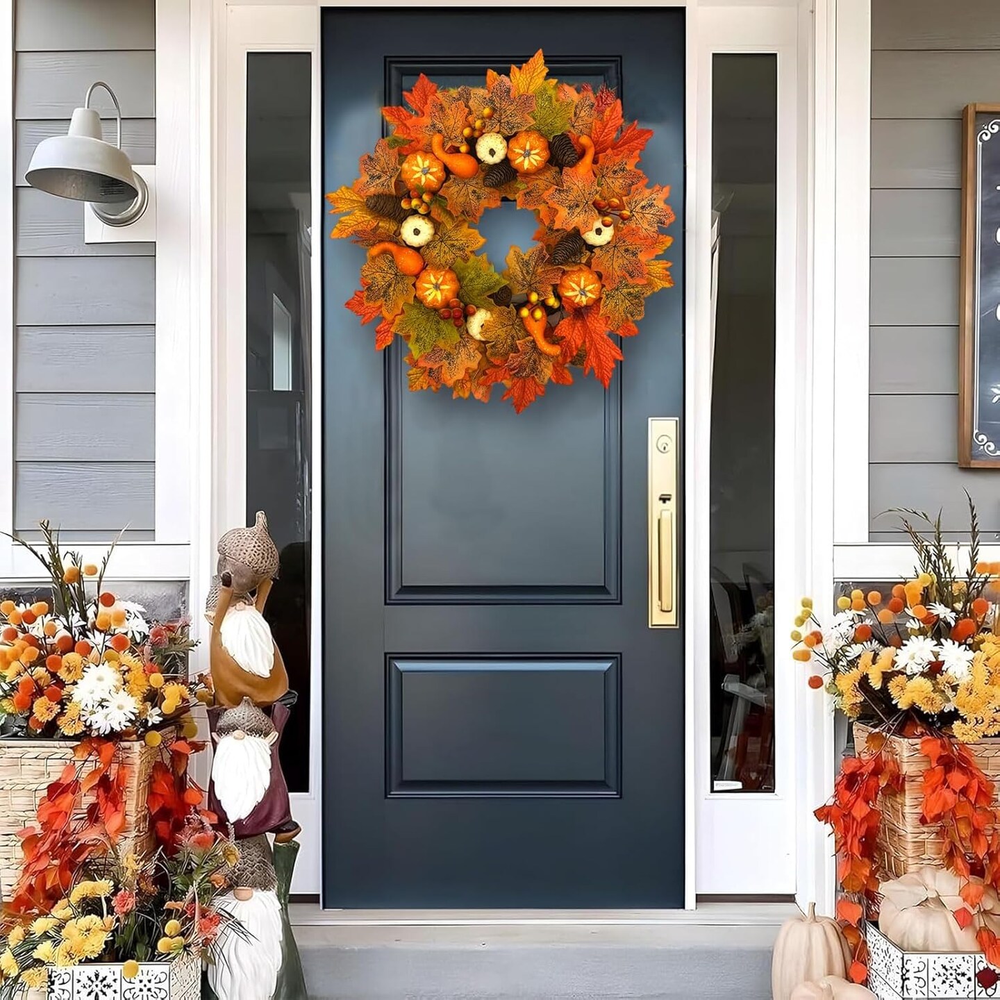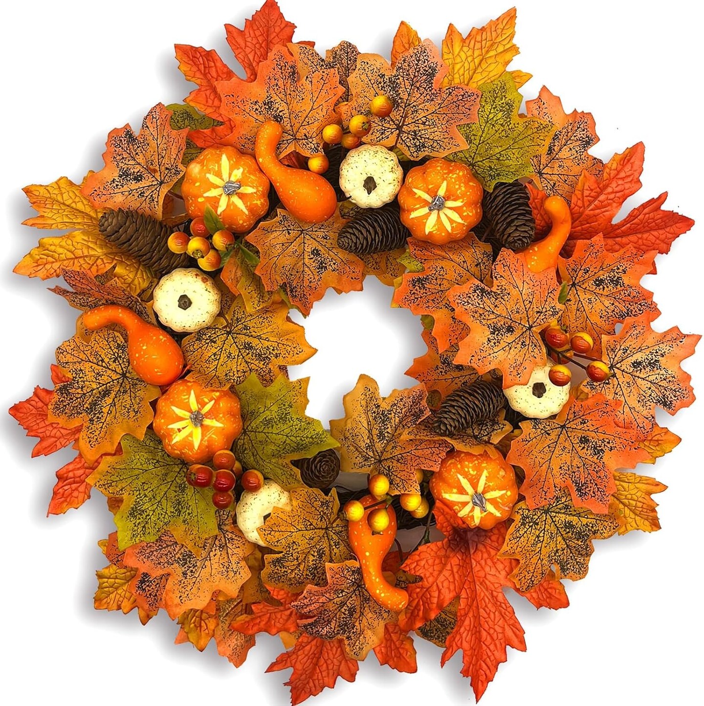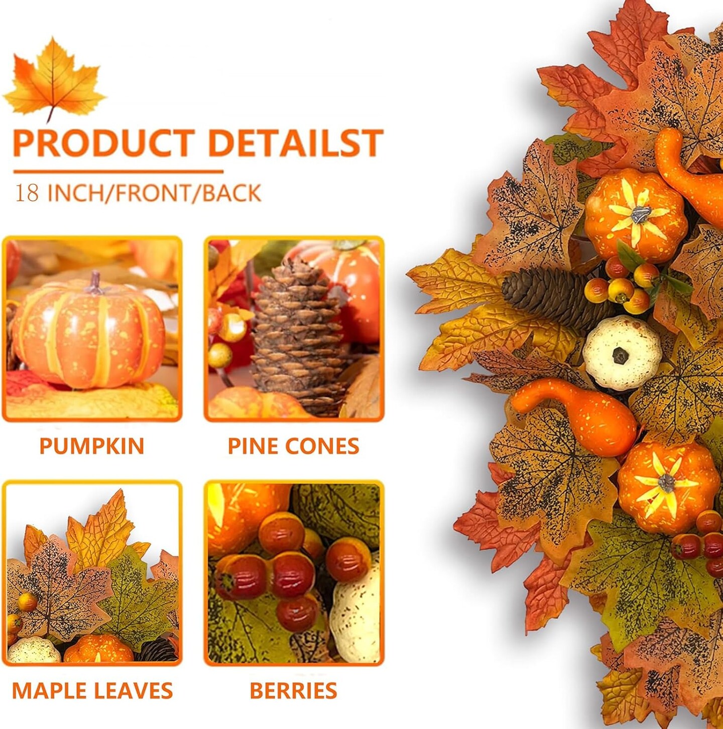 Fall Wreaths for Front Door, 18 Inch Fall Wreath with Berry, Maple Leaves and Pine Cone(Fall Wreaths)18"D x 13"W x 3"H
