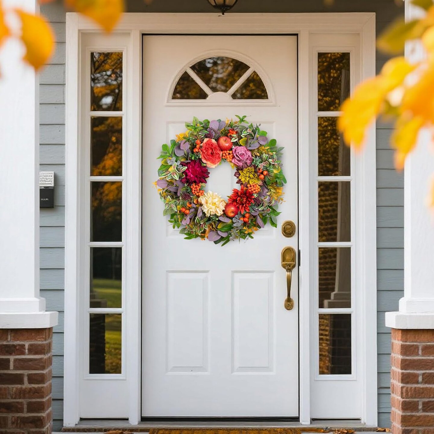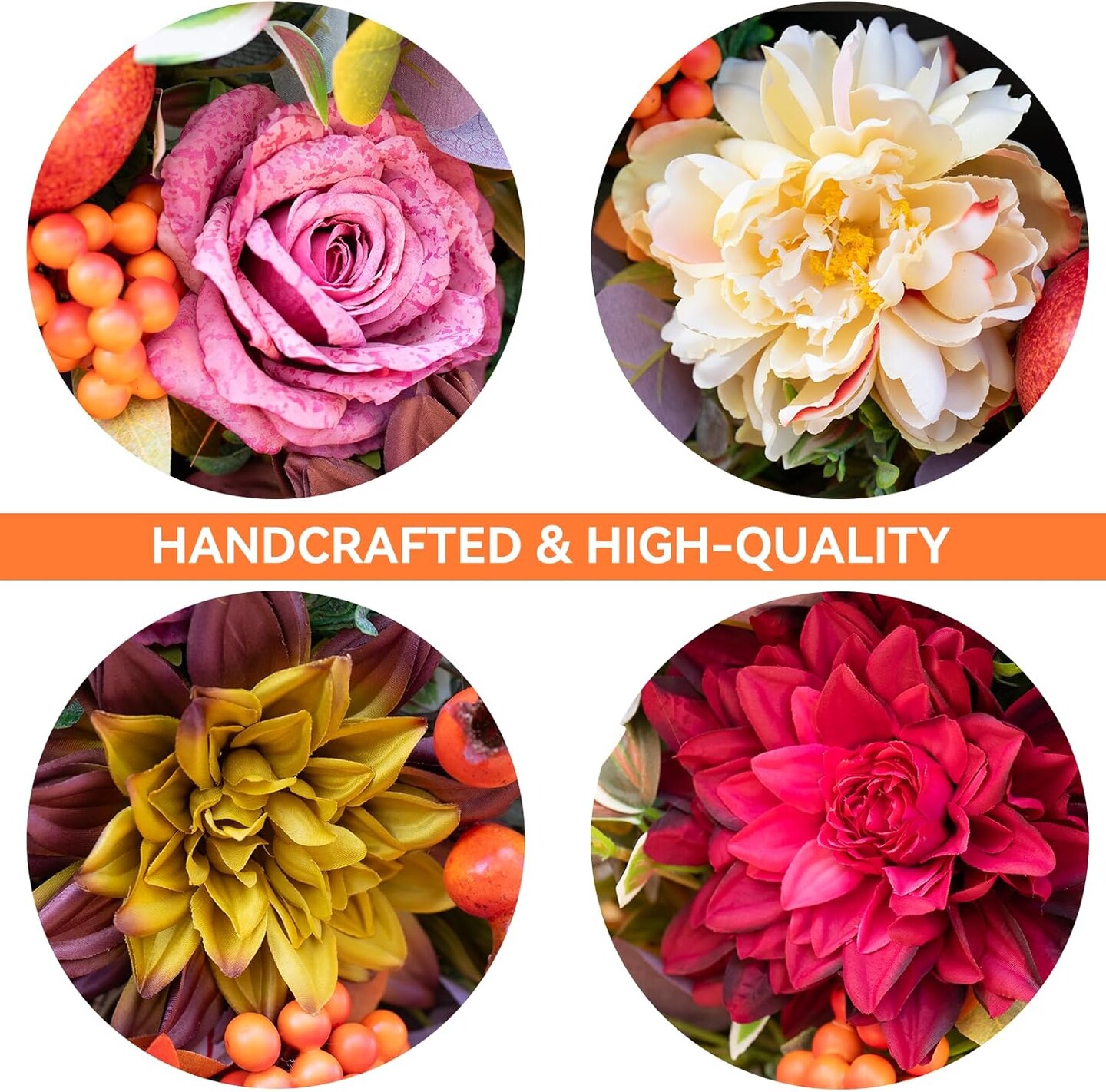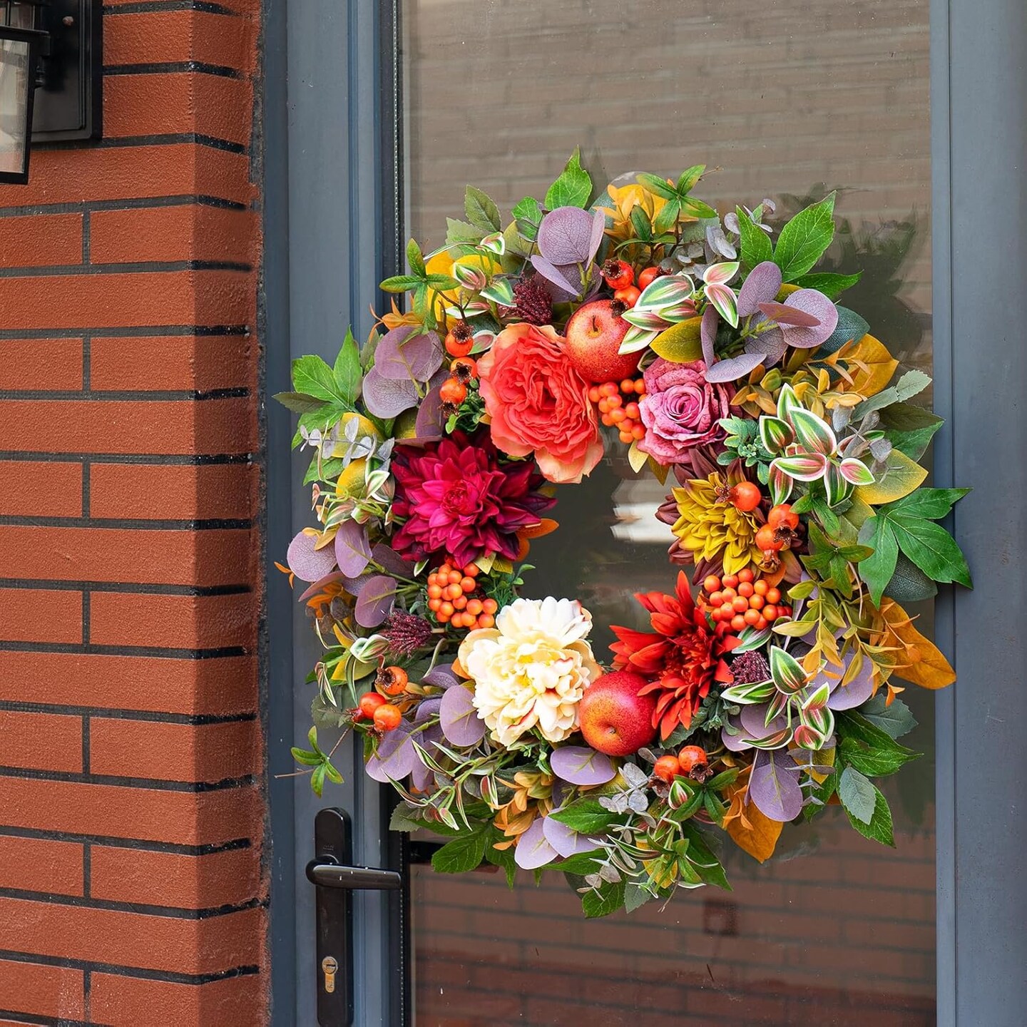 Fall Wreaths for Front Door Outside Autumn Wreath with Flowers, Apples, Berries & Leaves Fall Wreath for Outdoor Wreaths for Front Door, Autumn Decor for Outdoor 24 Inch